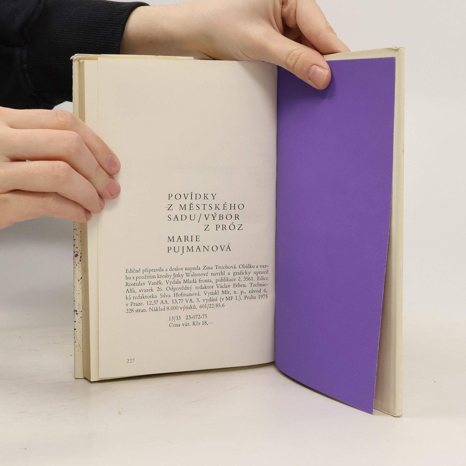 Základem svazku jsou prózy Povídek městského sadu doplněné o několik dalších málo známých povídek tohoto období a o torzo Románu školní třídy, v němž autorka chtěla zobrazit lidské dospívání a zrání první poválečné generace středoškoláků.
