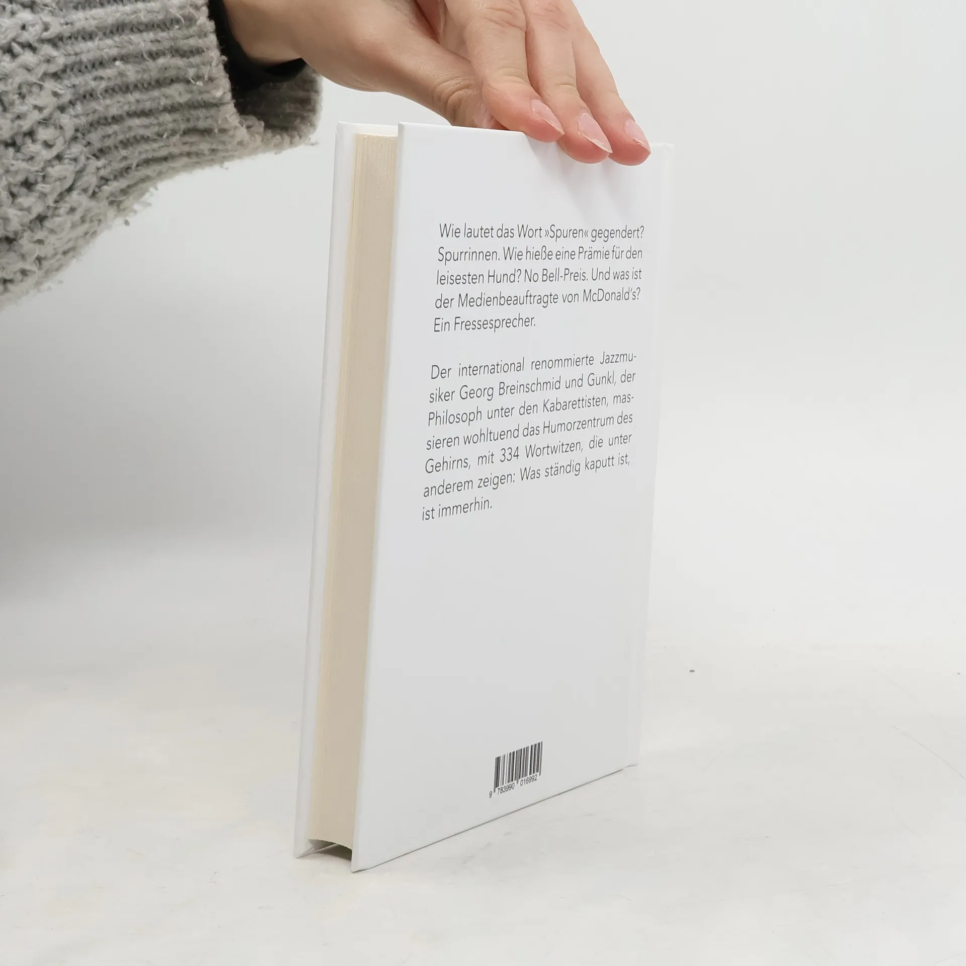Wie lautet das Wort »Spuren« gegendert? Spurrinnen. Wie hieße eine Prämie für den leisesten Hund? No Bell-Preis. Und was ist der Medienbeauftragte von McDonald‘s? Ein Fressesprecher. Der international renommierte Jazzmusiker Georg Breinschmid und Gunkl, der Philosoph unter den Kabarettisten, massieren wohltuend das Humorzentrum des Gehirns, mit 334 Wortwitzen, die unter anderem zeigen: Was ständig kaputt ist, ist immerhin.