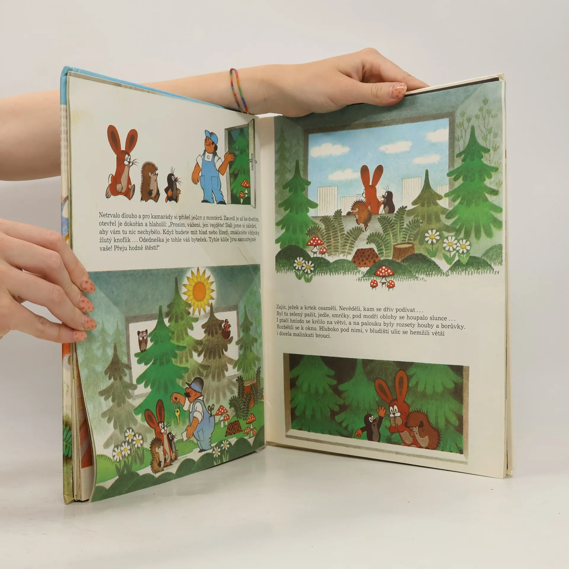 Krteček a jeho kamarádi zajíček a ježek vyděšeně pozorují, jak jejich krásný les mizí. Velké stroje kácejí stromy a zvířátka nestačí utíkat. Než se nadějí, vyroste místo lesa staveniště a pak město. Jenomže život ve městě - to pro krtky ani jiná zvířátka není to pravé.