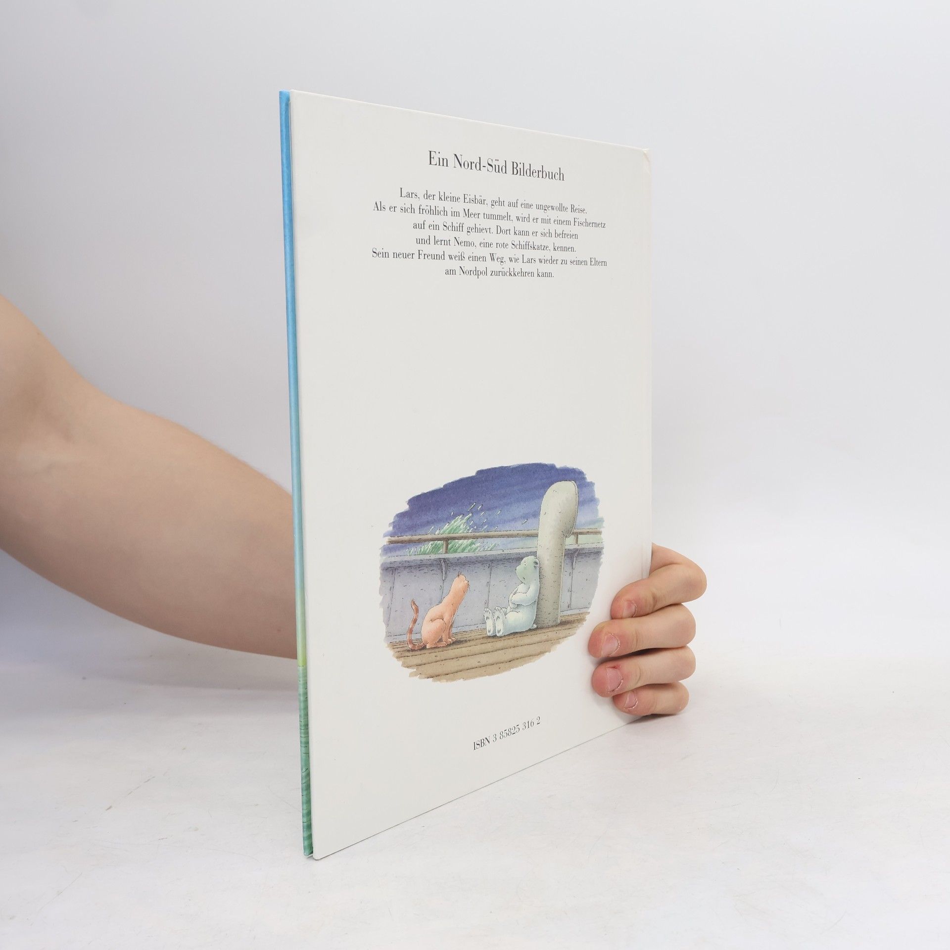 Lars, der kleine Eisbär, liegt gerne im Wasser und lässt sich von den Wellen treiben. Eines Tages wird er mit Hunderten von Fischen in einem grossen Netz gefangen und in den Bauch eines Schiffes geleert. Er lernt die Schiffskatze Nemo kennen. Im Hafen angekommen, schleichen sie des Nachts ans Land. Nemo führt Lars ins Quartier der Schiffskatzen. Eine schwarze Katze meldet: "Mein Schiff fährt zum Nordpol. Du kannst mitkommen." So kehrt Lars nach Hause zurück. Tagelang schaut er aufs Meer hinaus. "Nach was hältst du Ausschau?" fragt sein Vater. "Nach einem Schiff und einem Freund", sagt Lars