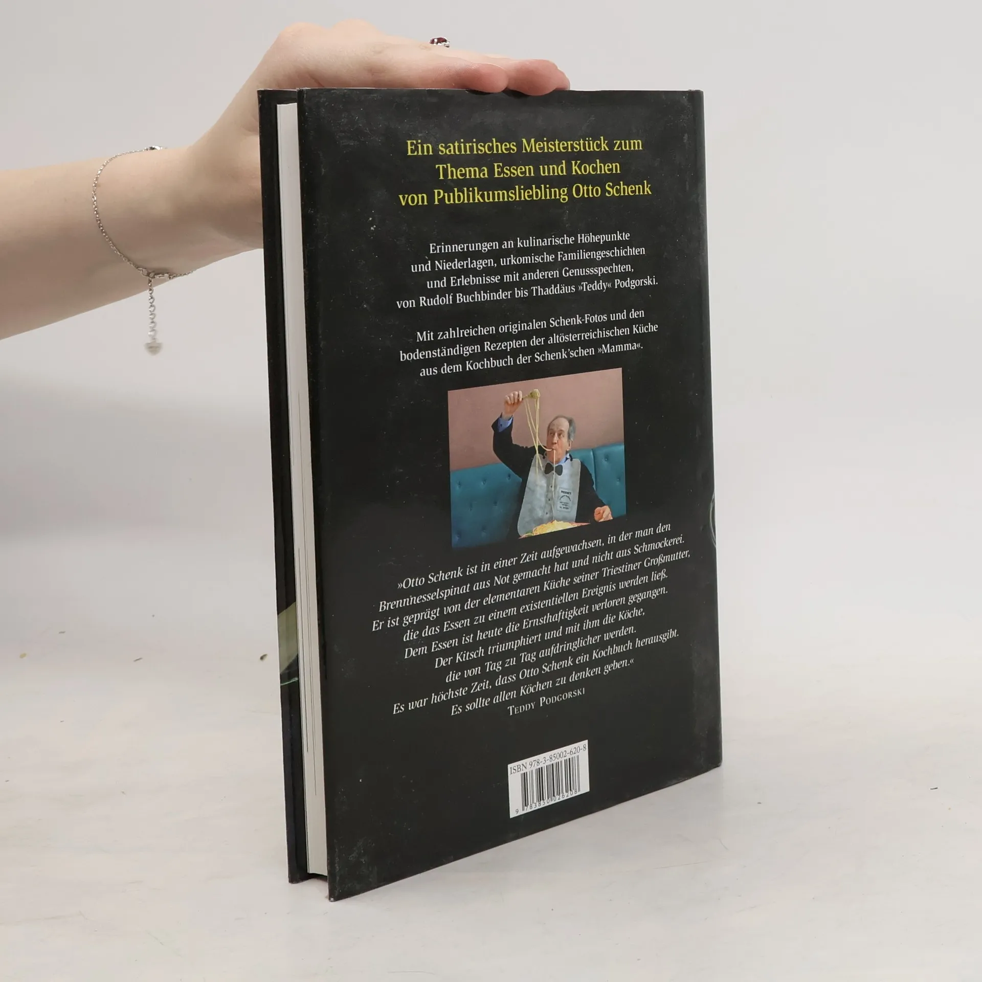 „Dieses Buch ist kein Kochbuch, ich kann eigentlich gar nicht kochen. Sogar das Essen fällt mir schwer, was leider nicht zur schlanken Linie führt, da man bei schlechtem Essen immer wieder solange hofft, doch noch auf etwas Gutes zu stoßen und so die verbotenen Kalorien im überreichem Maße einbringt. Da ich aber nicht wirklich koche, gehört Kochen für mich zu den aufregendsten Tätigkeiten. Jegliche Sorgen konzentrieren sich auf das Reindl, das Anbrennen, das Rösten, auf die Gerüche, die Gabel, die das Fleisch prüft, auf das Kosten, das Herrichten und so weiter. Vielleicht glücken mir dadurch in Sternstunden erfolgreiche Speisen“. Ein satirisches Meisterstück zum Thema Essen: Otto Schenk gelingen in diesem neuen Buch köstliche Satiren, urkomische Erlebnisse mit anderen Genussspechten von Teddy Podgorsky bis Rudolf Buchbinder, Geschichten seiner Kindheit, garniert mit zahlreichen bodenständigen Rezepten. Es sind literarische Gustostücke zum Thema Essen und Kochen, deren „sporadische Rezepte Rettungsringe sein sollen, die verzweifelten Essern beim Schwimmen durch das Meer des Ungeschmacks hie und da zum Überleben gereicht werden können“. Ein Pointenfeuerwerk, das die Fans des genialen Schauspielers auch vom humoristischen Schriftsteller überzeugen wird.