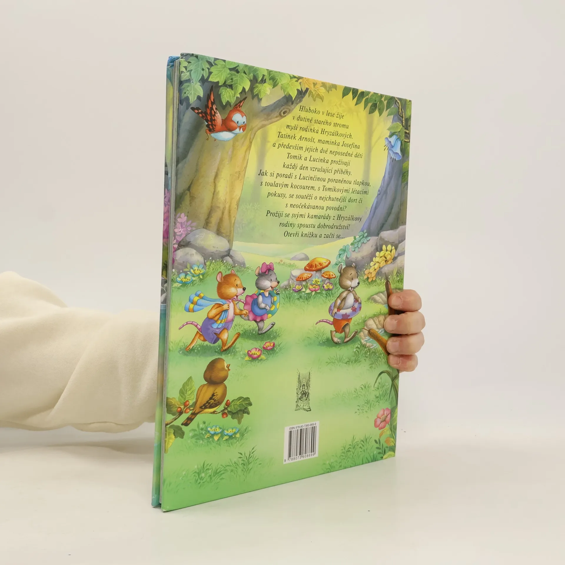 Hluboko v lese žije v dutině starého stromu myší rodinka Hryzálkových - tatínek Arnošt, maminka Josefína a především jejich dvě neposedné děti Tomík a Lucinka. Každý jejich den je plný vzrušujících příběhů a vaše děti je nyní mohou díky této krásně ilustrované knížce prožívat spolu s nimi. Příběhy myší rodinky pro nejmenší