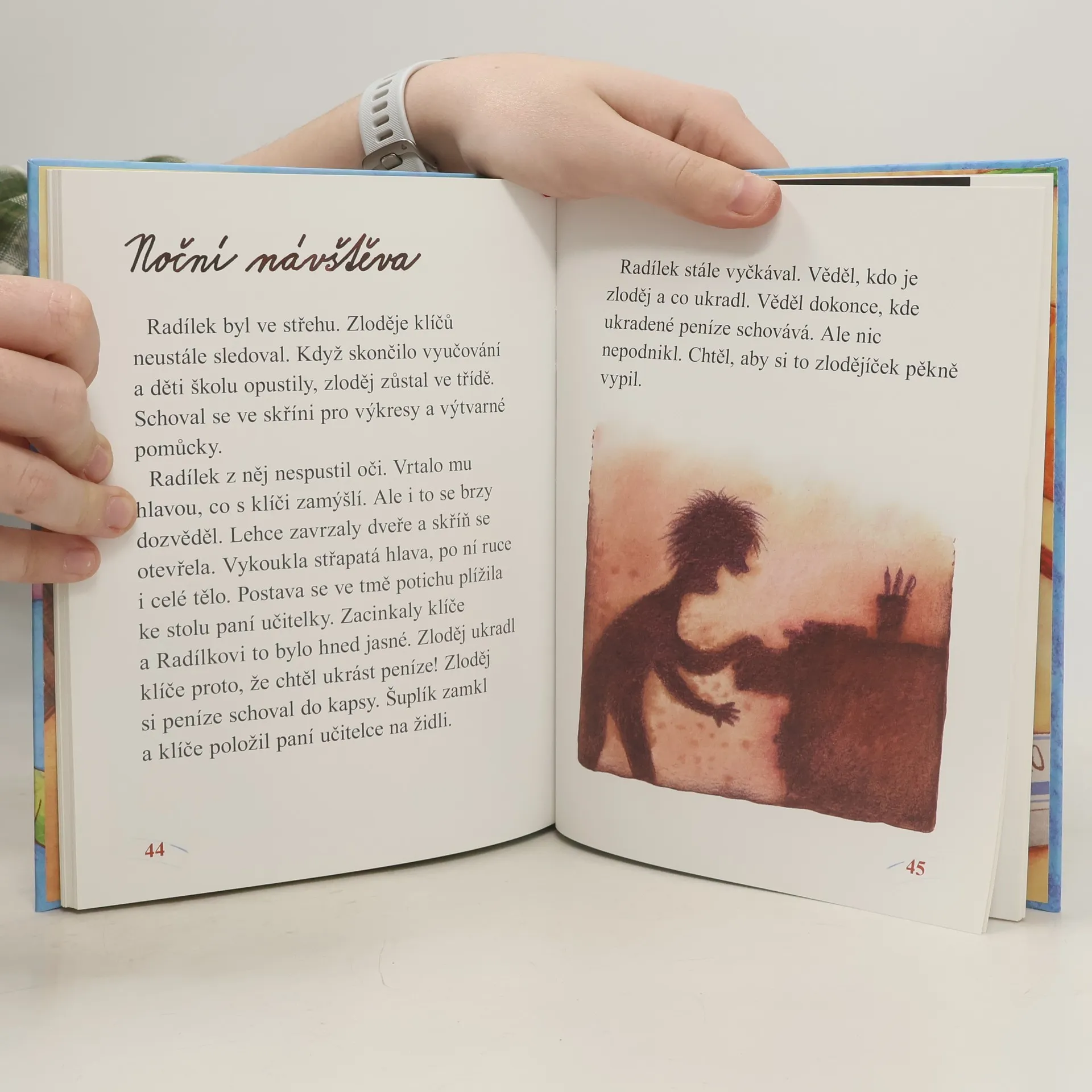 Příběh pro děti, v němž se mísí reálný svět se světem fantazie, volně navazuje na předchozí autorčinu knihu Školní strašidlo. O prázdninách se děti ze školy vytratí a Radílek, školní strašidlo, zůstane sám. Trochu se nudí, tak ho napadne zajít do knihovny. Tam přečte všechny knížky s detektivními náměty a touží stát se detektivem. Jeho přání se mu brzy vyplní. Ještě před koncem prázdnin se do školy vloupou lupiči. Radílek nejenže vynalézavě zabrání krádeži, ale ještě pomůže lupiče dopadnout. Když začne školní rok, jeho detektivní práce nekončí – ba naopak! Příběh je určen zejména začínajícím čtenářům (od 7 let), ale může se líbit i předškolákům – poslouží jim k seznámení se školním prostředím.