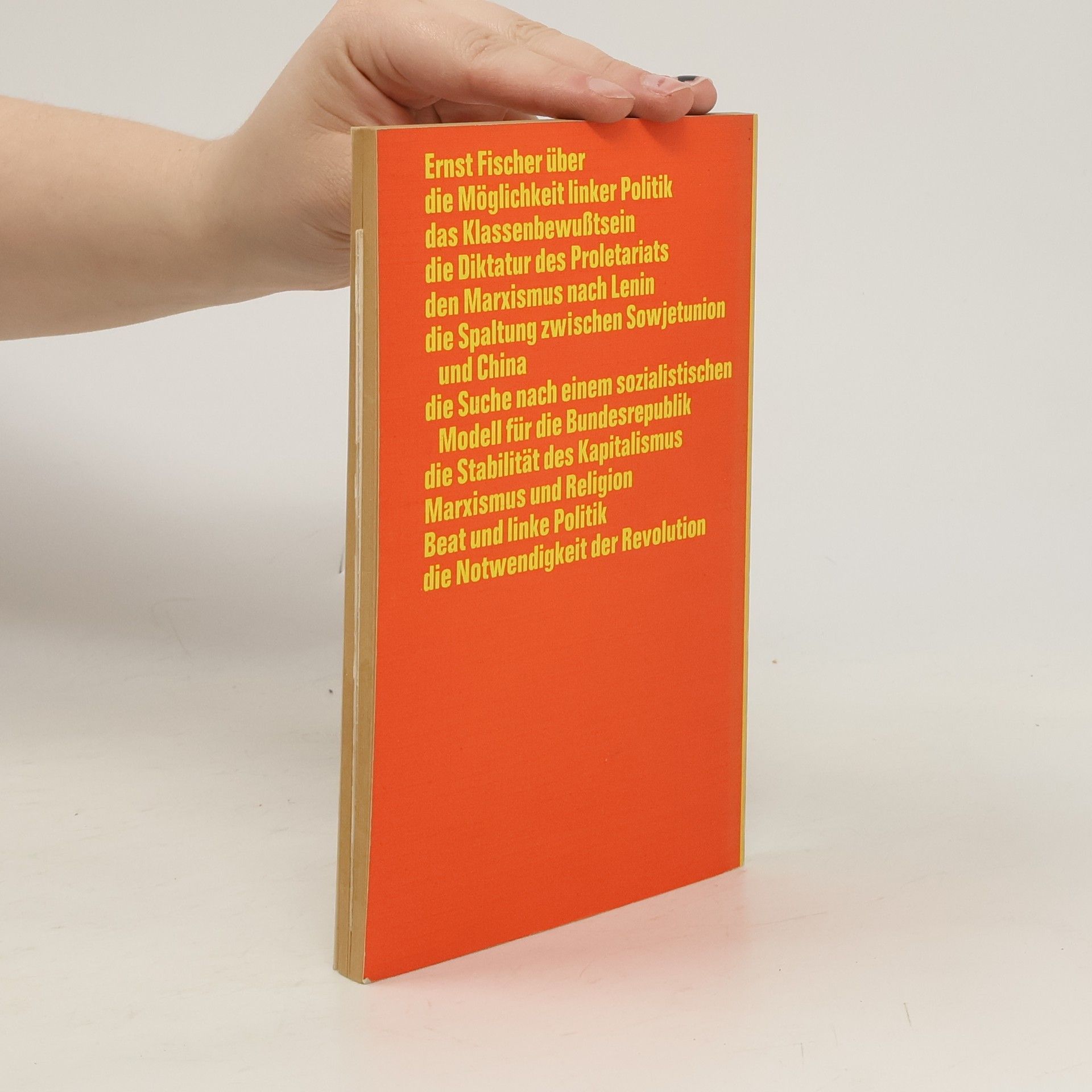 Ernst Fischer überdie Möglichkeit linker Politikdas Klassenbewußtseindie Diktatur des Proletariatsden Marxismus nach Lenindie Spaltung zwischen Sowjetunion und Chinadie Suche nach einem sozialistischen Modell für die Bundesrepublikdie Stabilität des KapitalismusMarxismus und ReligionBeat und linke Politikdie Notwendigkeit der Revolution