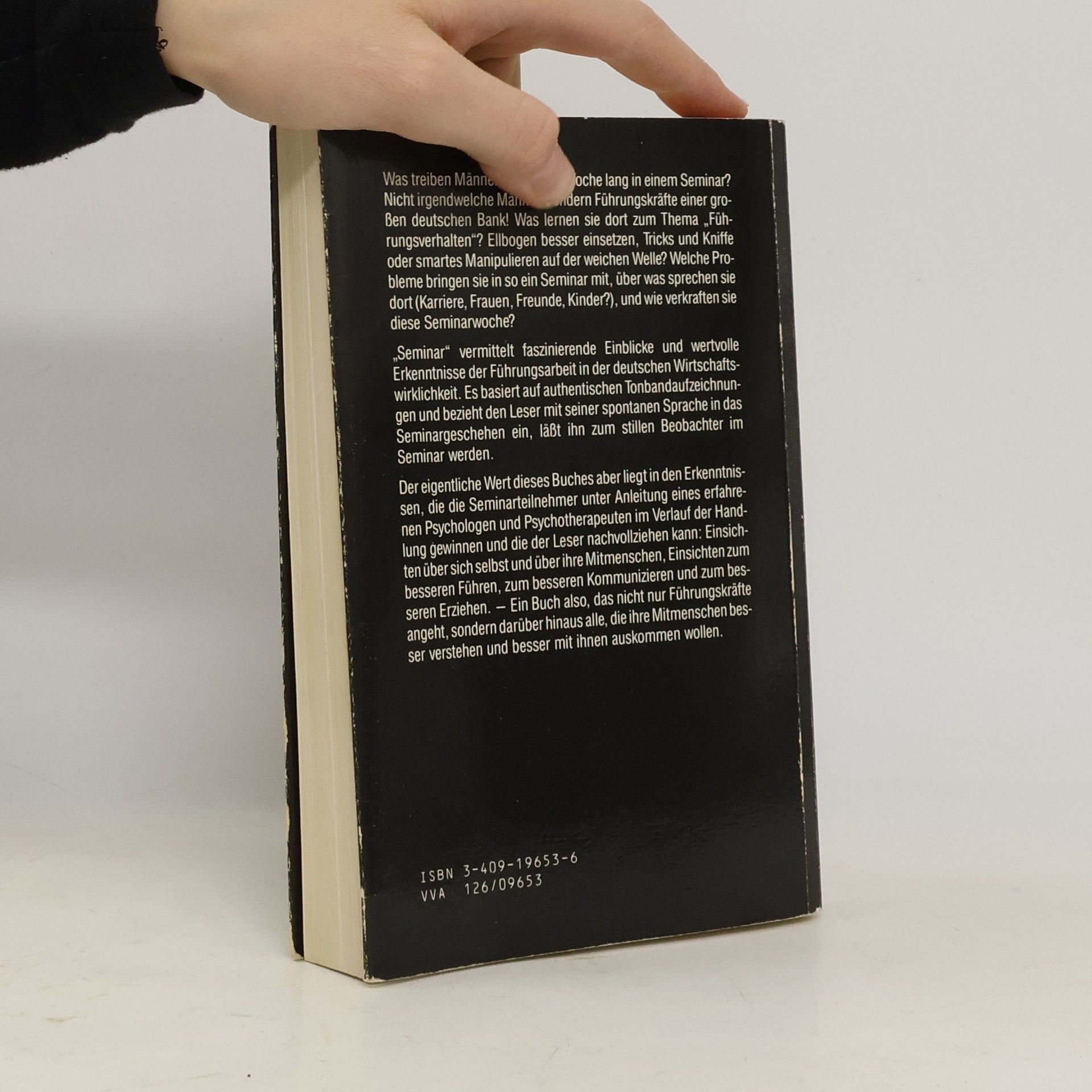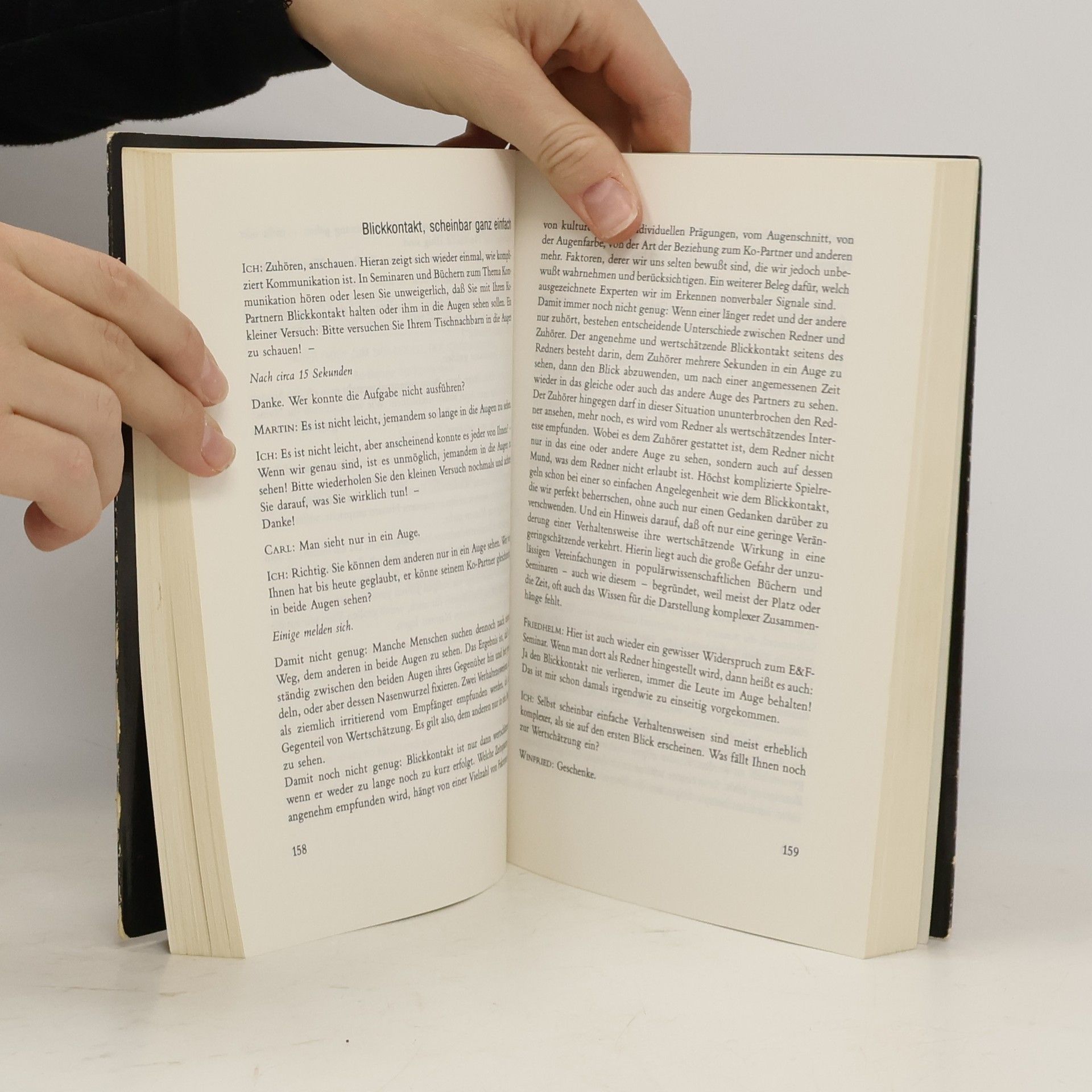 InhaltsverzeichnisÜber das Buch.Montag abend.Begrüßung der Teilnehmer.Seminarerwartungen der Teilnehmer.Sechs Besonderheiten des Seminars.Dienstag vormittag.Roter Faden (1).Besprechung der ersten Eindrücke der Teilnehmer vom Seminarleiter.Nonverbale Kommunikation.Vorbemerkung zu den Feedbacks.Das „SIDA-Schema“.Roter Faden (2).Vorbereitung auf die Feedbacks.Feedback-Regeln.1. Feedback (für Carl).Dienstag nachmittag.2. Feedback (für Martin).3. Feedback (für Winfried).Kommunikationsstörungen im Bereich der Sach-Aussage: „Verständlichkeit“ und „Stimulanz“.Kommunikationsstörungen im Bereich der Ich-Aussage: „Offenheit“.4. Feedback (für Wolfhard).Der „Dornröschen-Effekt“.Dienstag abend.5. Feedback (für Mischa).6. Feedback (für Heinz).Mittwoch vormittag.Roter Faden (3).Kommunikationsstörungen im Bereich der Du-Aussage: „Wertschätzung“.„Wertschätzung“ und „Lenkung“ in der Kindererziehung.Kommunikationsstörungen im Bereich der Aufforderung: „Direktheit“.Vier Hauptgebote guter Kommunikation.Mittwoch nachmittag.Deformationsmechanismen menschlicher Wahrnehmung.Zum „Klecksbild“.Auswirkungen von Bezugssystemen.Auswirkungen von Bezugssystemen im SIDA-Modell der Kommunikation.Aggressionen als Liebeserklärungen.Weitere Experimente zum Thema „Bezugssysteme“.Roter Faden (4).Zwei Merksätze zum SIDA-Modell der Kommunikation.7. Feedback (für Ernst).Ein ausführliches Fallbeispiel zur Anwendung des SIDA-Modells der Kommunikation.Weitreichende Konsequenzen aus dem Fallbeispiel.Mittwoch abend.8. Feedback (für Friedhelm).9. Feedback (für Albert).Donnerstag vormittag.Entstehung von Ko-Störungen im SIDA-Modell.Formen defensiven und aggressivenKo-Verhaltens.Verhaltensweisen, die zur Vermeidung oder Beseitigung von Ko-Störungen geeignet sind.Roter Faden (5).Die „10 Wertschätzungsgebote“.Vorbereitung auf die Rollenspiele.Donnerstag nachmittag.Erstes Rollenspiel.Lernpunkte aus dem ersten Rollenspiel.Zweites Rollenspiel.Donnerstag abend.Lernpunkte aus dem zweiten Rollenspiel.Wurden die Teilnehmer manipuliert?.Freitag vormittag.Drittes Rollenspiel.Auswertung und Lernpunkte des dritten Rollenspiels.Abschlußphase des Seminars.Anmerkungen.