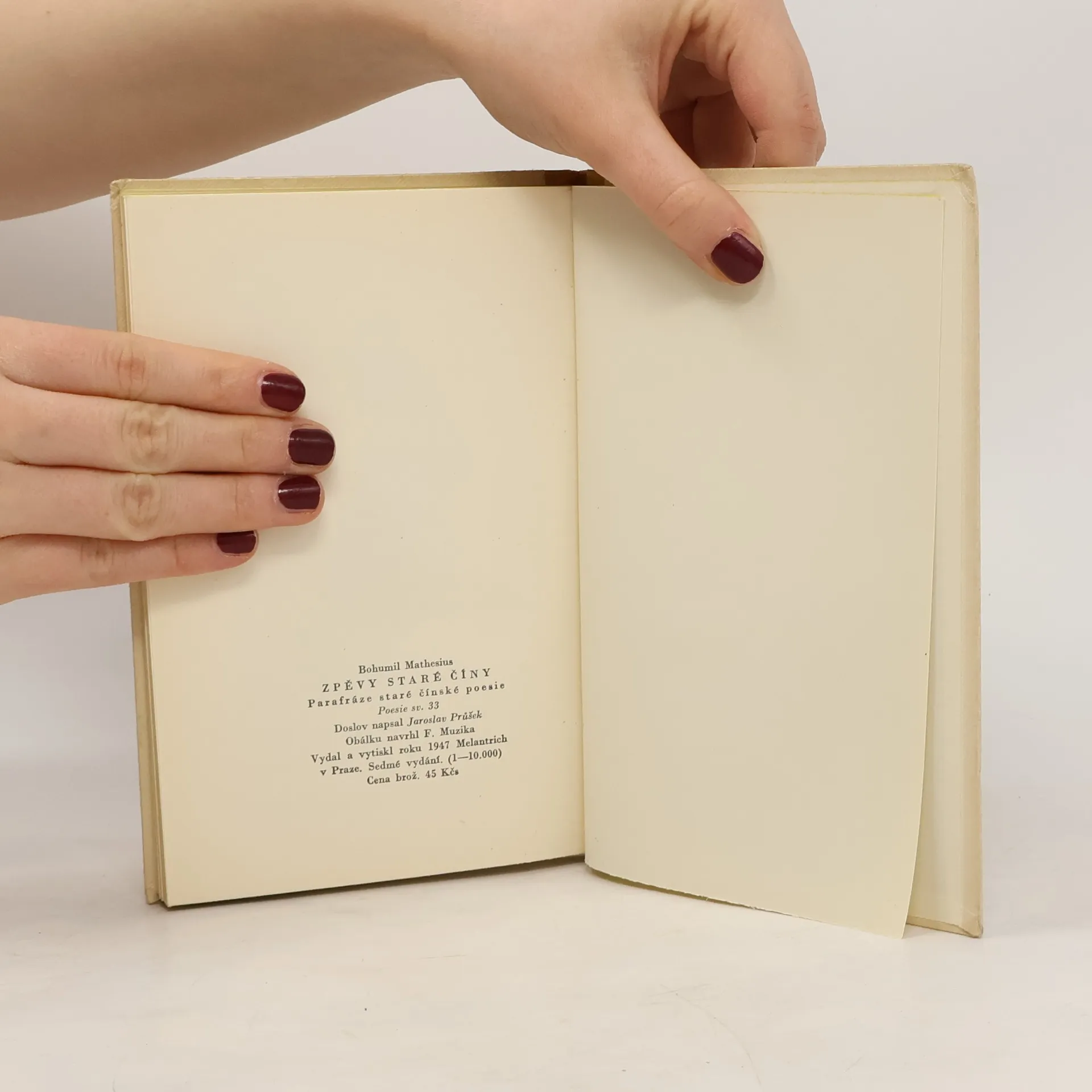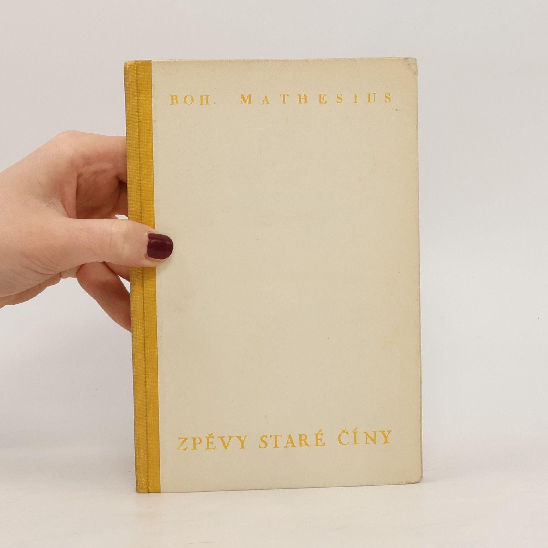 Parafráze staré čínské poesie. Soubor přináší výběr klasické čínské básnické tvorby od starověku až po sklonek 13. století, obsahující také ukázky z lidových her, povídek a básní. První z celkem tří svazků Mathesiových básnických parafrází staré čínské poesie, nazvaných "Zpěvy staré Číny". Tento svazek byl po velkém úspěchu později doplněn ještě dalšími dvěma ("Nové zpěvy Staré Číny" a "Třetí zpěvy staré Číny").
