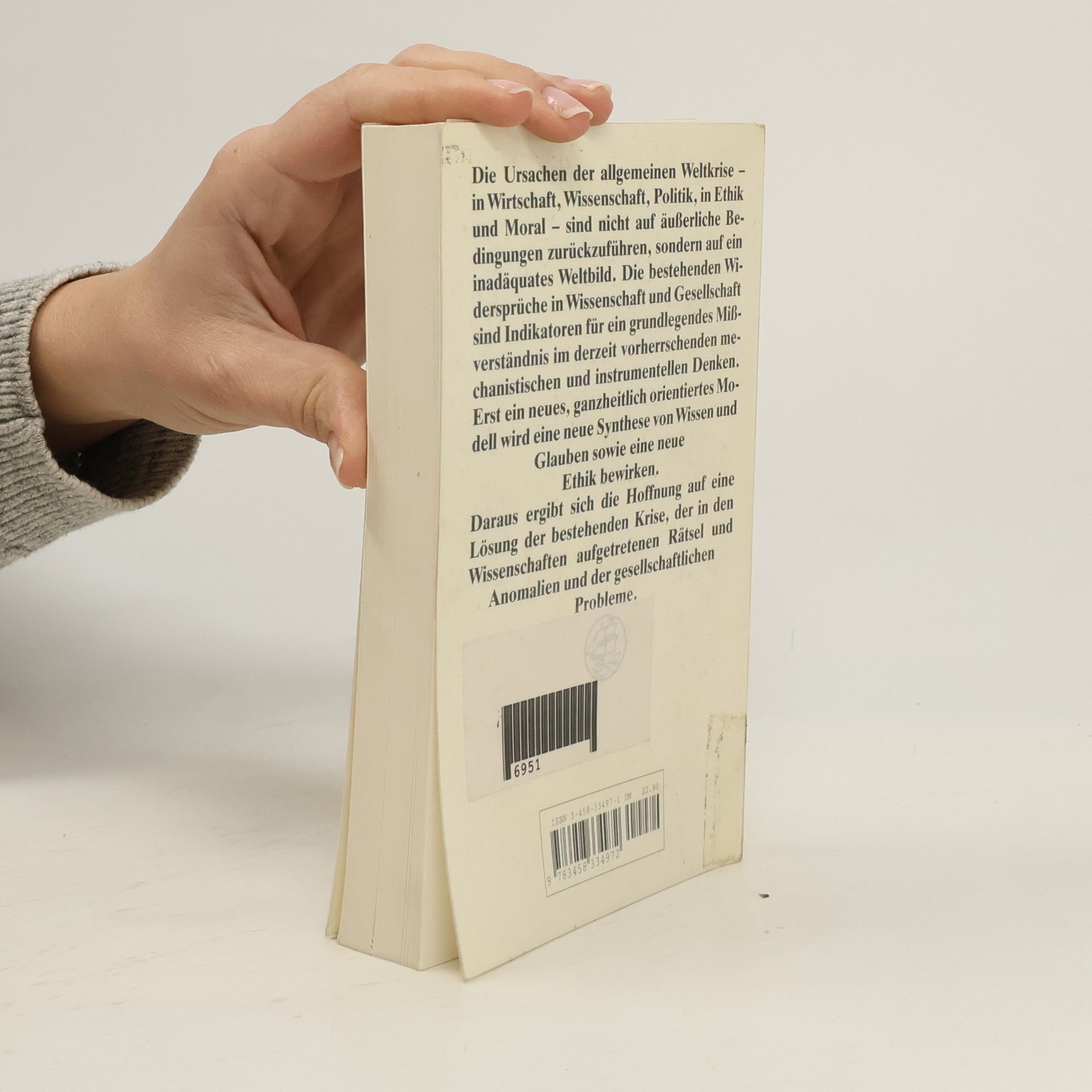 Weltweite ökologische, soziale und ökonomische Probleme und deren Zusammenhänge zwingen uns, ein starres Weltbild zu überdenken. Der fatale Glaube an Problemlösungsmechanismen durch die Naturwissenschaften ist einer orientierungslosen Problemverwaltung gewichen. Die in Teilen zeitlos gültigen Gedankengebäude der alten Weltreligionen, dem „aufgeklärten Menschen“ wenig vertraut, könnten Ansatz sein. Es gilt, ein neues, holistisches Weltbild zu entwerfen, welches sich auf die Erkenntnisse der Naturwissenschaften, insbesondere der Quantentheorie, stützt. Von diesen wagt der Autor den Brückenschlag über Metaphysik und Parapsychologie zu den Grundweisheiten der Weltreligionen. Ein atemberaubendes Unterfangen, das in seinem erkenntnistheoretischen Ansatz weit über Heissenberg, Weizsäcker und sogar Capra hinausreicht.