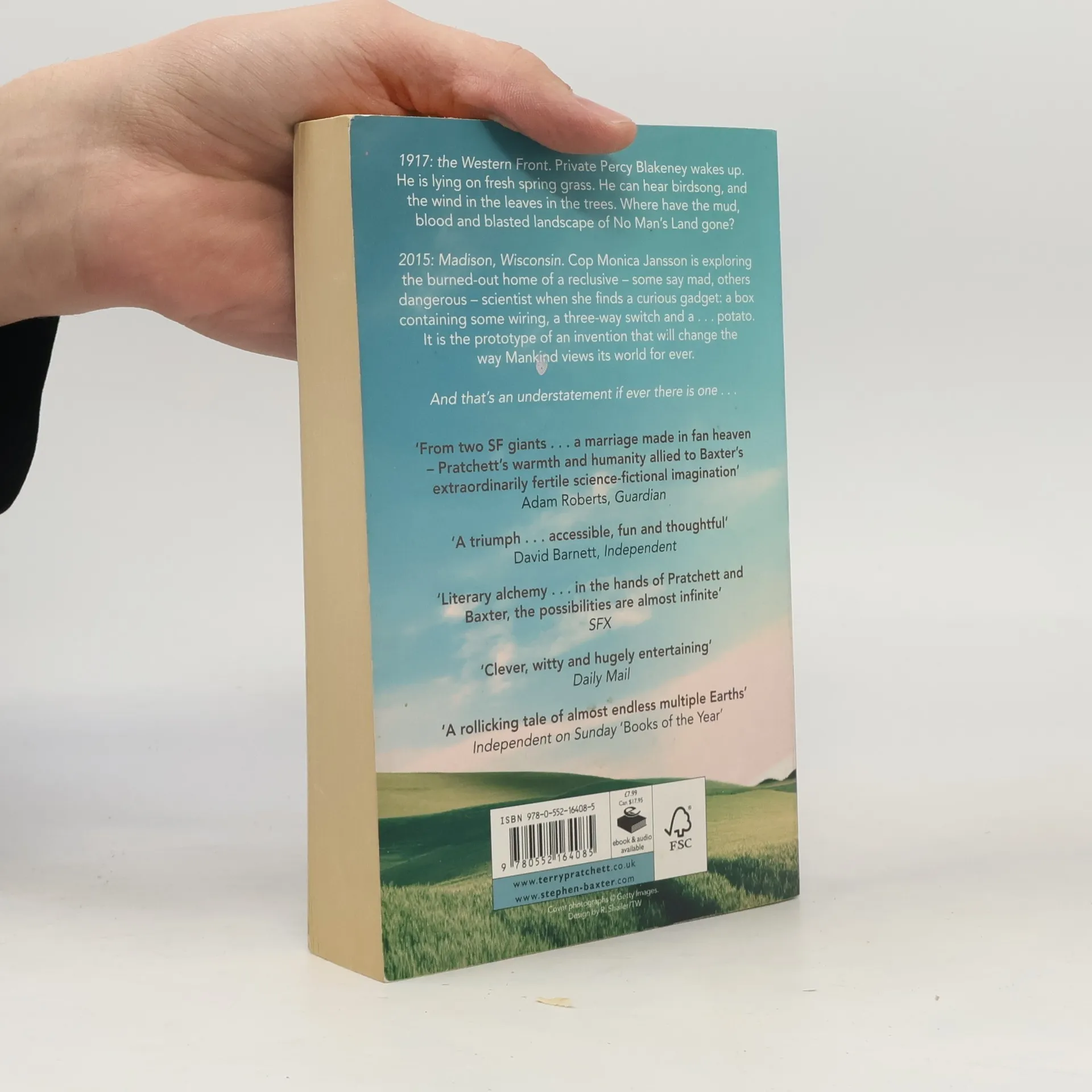 1916: the Western Front. Private Percy Blakeney wakes up. He is lying on fresh spring grass. He can hear birdsong, and the wind in the leaves in the trees. Where has the mud, blood and blasted landscape of No Man's Land gone? 2015: Madison, Wisconsin. Cop Monica Jansson is exploring the burned-out home of a reclusive (some said mad, others dangerous) scientist when she finds a curious gadget - a box containing some wiring, a three-way switch and a...potato. It is the prototype of an invention that will change the way Mankind views his world for ever. And that is an understatement if ever there was one...