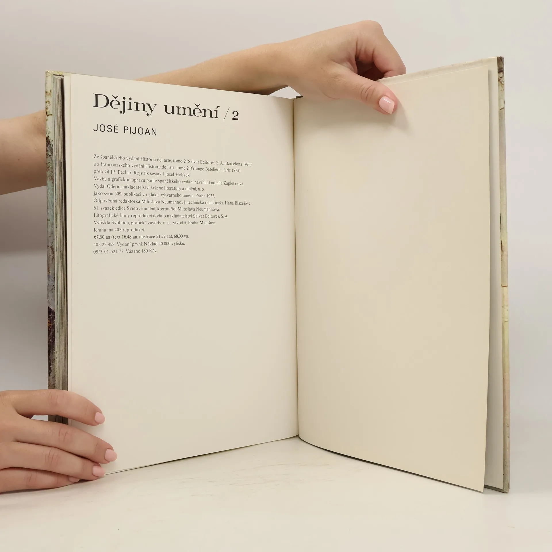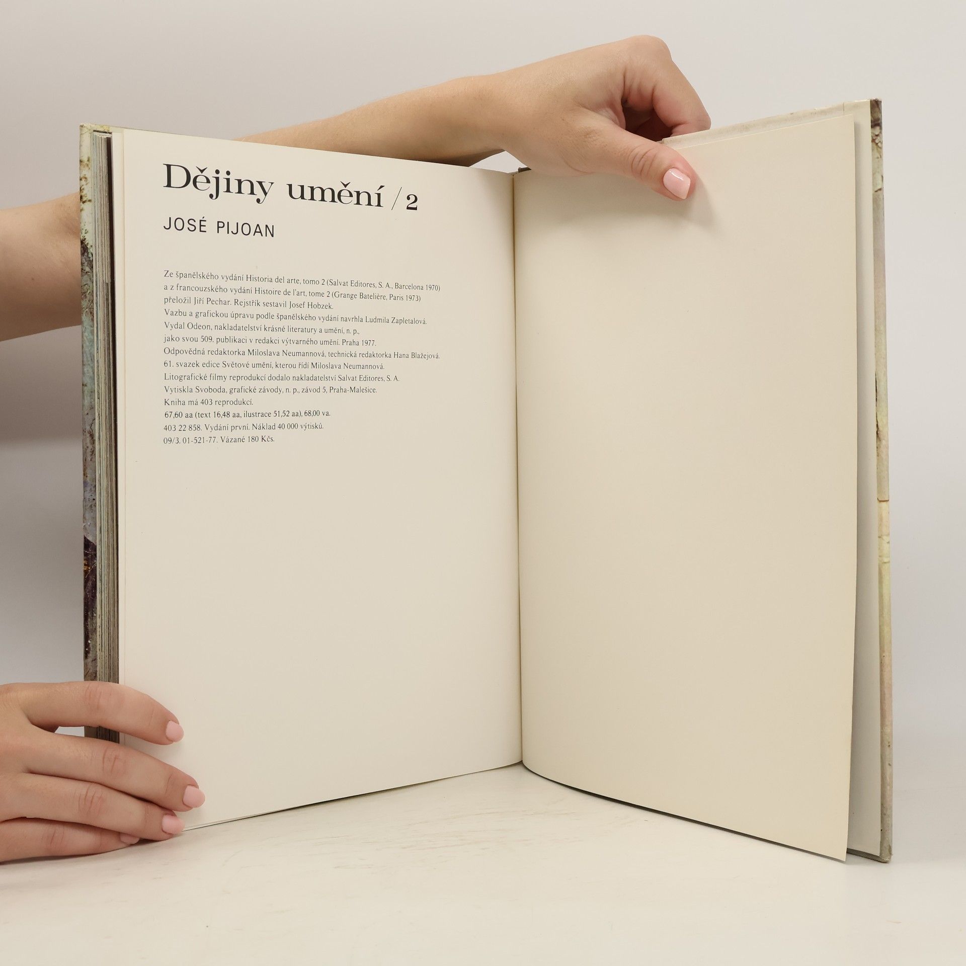 Toto rozsáhlé encyklopedické dílo čtenáře postupně seznámí s poklady světového umění. Opírá se o proslulé dějiny Josého Pijoana, které vyšly před téměř 70 lety. Čtenáři, milovníci umění, ocení bohatství obrazové dokumentace, na níž je dílo založeno. Vynikající barevné reprodukce představují jednotlivé kultury, epochy, umělecké proudy a osobnosti. Desetidílné Dějiny umění jsou určeny širokému okruhu zájemců o výtvarnou kulturu a kulturní historii. Druhý svazek je věnován antice. Samostatně může sloužit jako vynikající přehledná příručka dějin umění Řecka a Říma. Začíná líčením obdivuhodné kultury mínójské a mykénské, věnuje se archaickému umění Řecka, rozkvětu Athén a k helénismu Velkého Řecka. Zabývá se výtvarným umem Etrusků i vývojem římského umění až do jeho podního období.