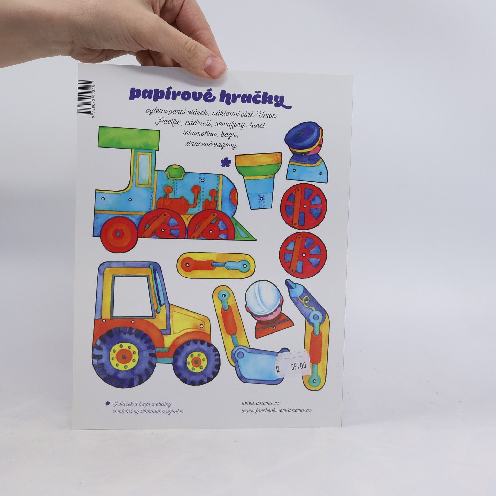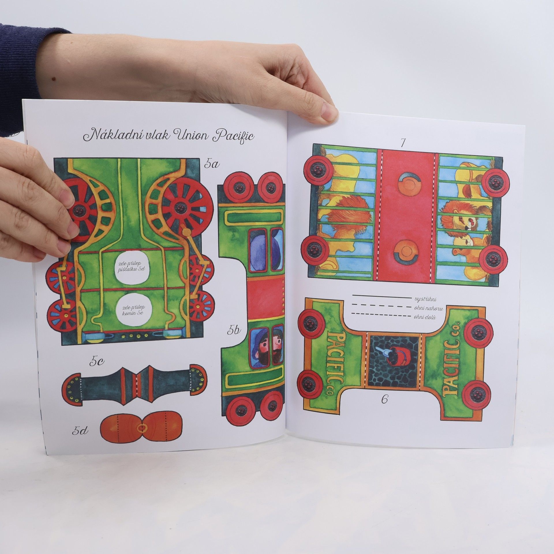 Vyrob si nákladní vlaka parní vláček, tunel i nádraží a pohraj si s nimi. Papírové hračky: výletní parní vláček, nákladní vlak Union Pacific, nádraží, semafor, tunel, lokomotiva, bagr, ztracené vagony.