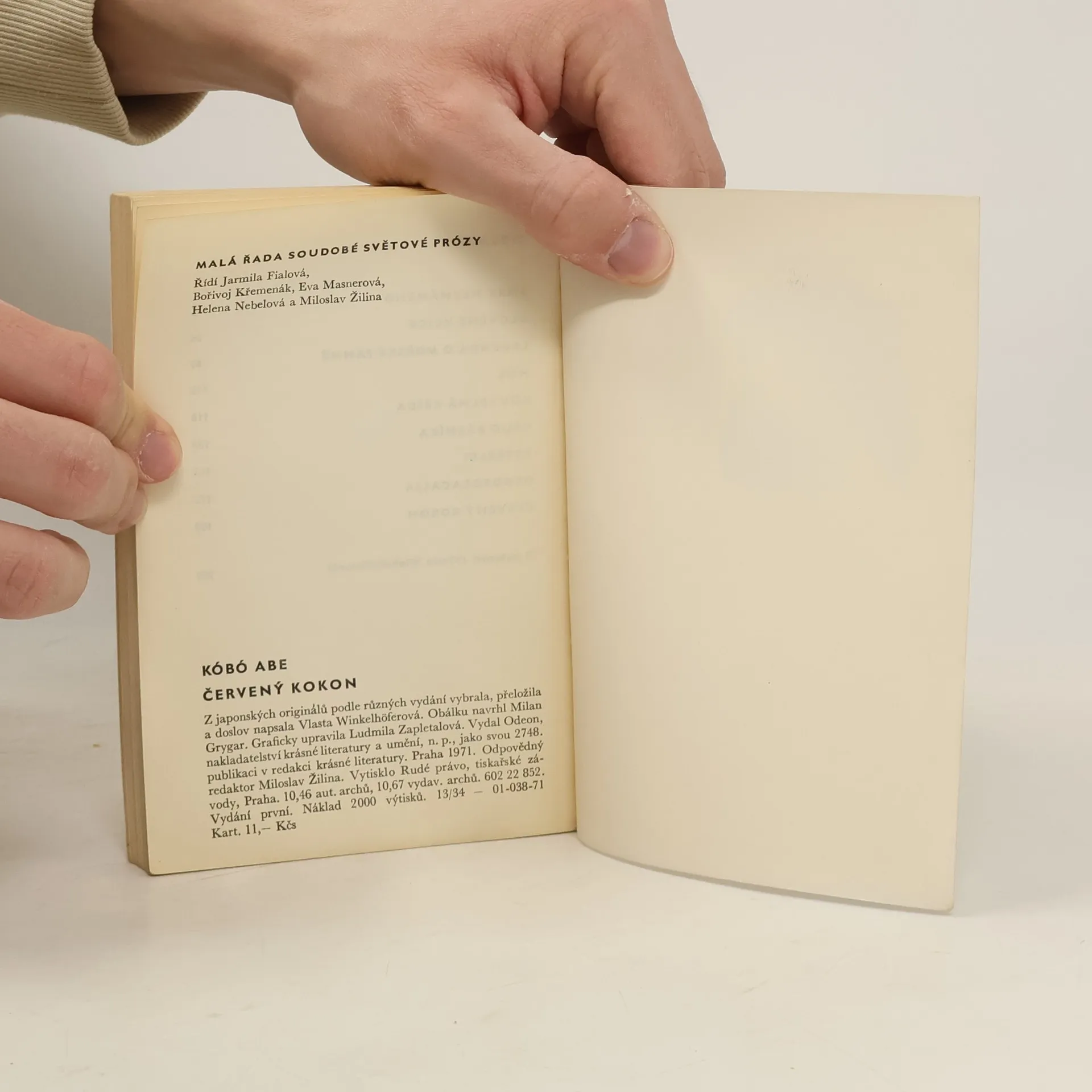 Soubor povídek japonského povídkáře, romanopisce, dramatika, esejisty, nejvýraznějšího představitele poválečné školy (sengoha) a také vystudovaného lékaře. Zabýval se předválečnou avantgardou, zejména surrealismem. Ve své práci si volí fantastické náměty a používá postupů vědecko-fantastické literatury ve spojení se současnou realitou. Mezi jeho časté náměty také patří metamorfóza člověka – zde např. v povídkách Červený kokon a Kouzelná křída.Povídky:• Smrt neznámého (無関係な死 [Mukankei na shi] An Irrelevant Death)• Olověné vejce (鉛の卵 [Namari no tamago] The Egg of Pb)• Legenda o mořské panně ([Ningyoden] The Tale of the Mermaid)• Hůl (棒 [Bō] The Stick)• Kouzelná křída (魔法のチョーク[Mahō no chōku] The Magic Chalk)• Osud básníka (詩人の生涯 [Shijin no shōgai] The Life of a Poet)• Vetřelci (闖入者 [Chinnyūsha] Intruders)• Dendrocacalia (デンドロカカリヤ [Dendorokakariya] Dendrocacalia)• Červený kokon (赤い繭 [Akai mayu] The Red Cocoon)Z japonských originálů podle různých vydání vybrala, přeložila a doslov „O autorovi“ napsala Vlasta Winkelhöferová.Obálku navrhl Milan Grygar.Graficky upravila Ludmila Zapletalová.Edice: Malá řada soudobé světové prózy.Náklad 2 000 výtisků.ISBN: 01-038-71.