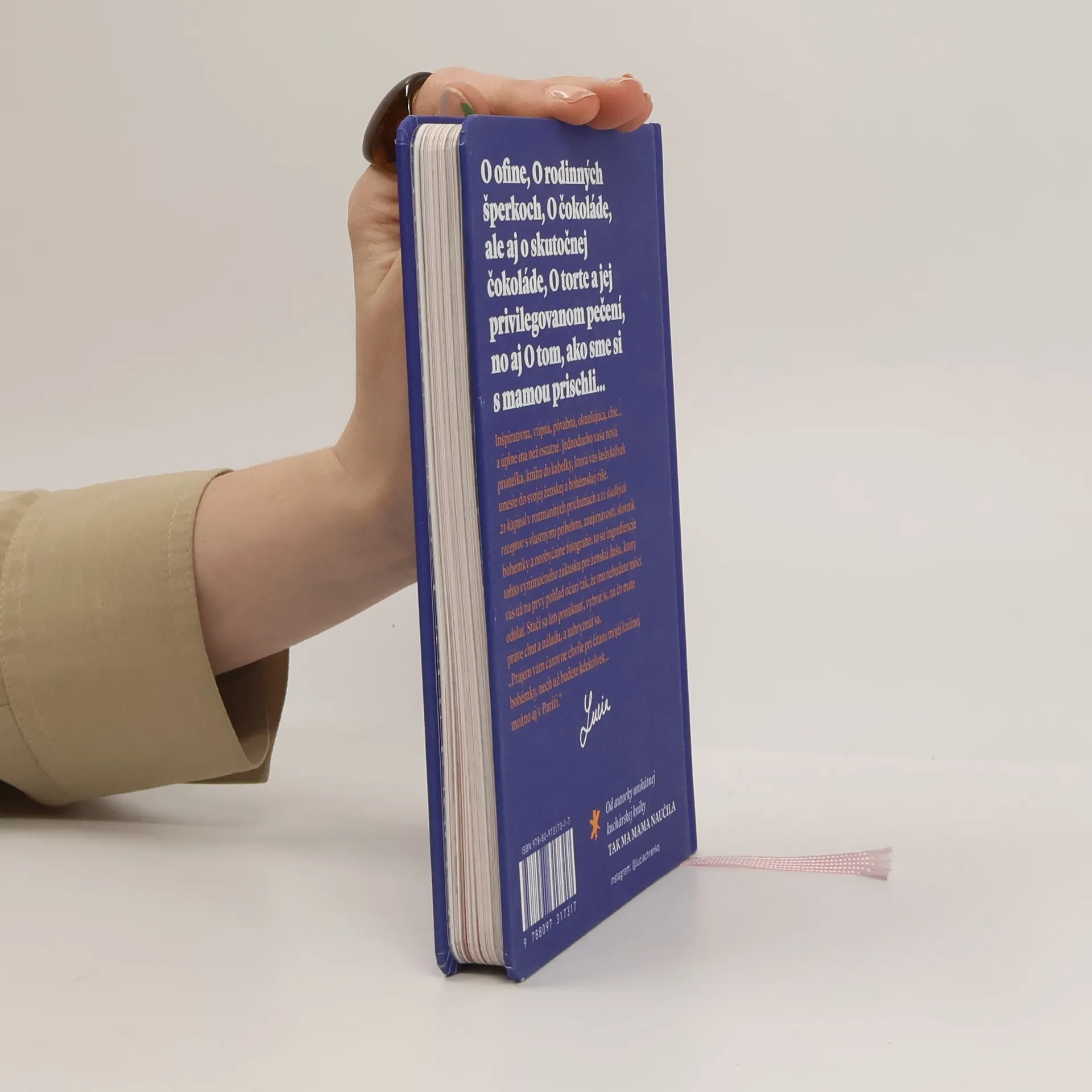 O ofine, O rodinných šperkoch, O čokoláde, ale aj o skutočnej čokoláde, O torte a jej privilegovanom pečení, no aj O tom, ako sme si s mamou prischli. Inšpiratívna, vtipná, pôvabná, okúzľujúca, chic… a úplne iná než ostatné. Jednoducho vaša nová priateľka, ktorá vás kedykoľvek unesie do svojej ženskej a bohémskej ríše. 21 kapitol v rozmanitých príchutiach a 11 sladkých receptov s vlastnými príbehmi, zaujímavosti, slovník bohémky a neobyčajné fotografie, to sú ingrediencie tohto výnimočného zákusku pre ženskú dušu, ktorý vás už na prvý pohľad očarí tak, že mu nebudete môcť odolať. Stačí sa len ponúknuť, vybrať si, na čo máte práve chuť a náladu, a zahryznúť sa.