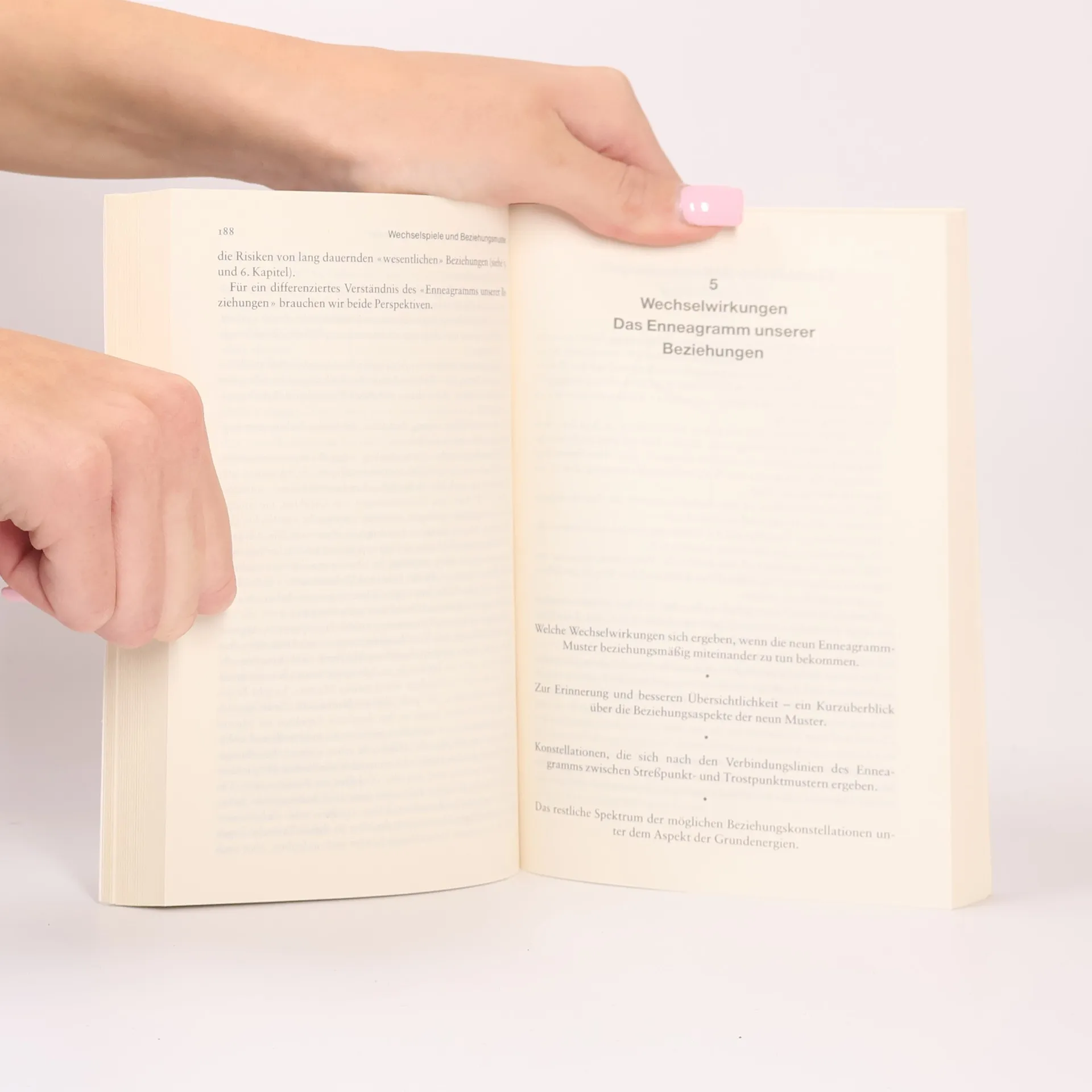 Das Enneagramm: kein modisches Zauberwort aus der Psycho-Kiste, sondern ein traditionsreiches Modell neun grundlegender menschlicher Charaktermuster, die hier im Kontext der Humanistischen Psychologie neu interpretiert werden. Unsere Wahrnehmung, unser Denken, Fühlen und Verhalten folgen einem dieser Muster - nicht immer, aber öfter, als wir ahnen (und uns lieb ist). Auf welche Weise wir in wichtigen Beziehungen mit den Wechselwirkungen verschiedener „seelischer Strickmuster“ in Berührung kommen, davon handelt dieses Buch. Und davon, wie wir mit den Spielregeln, die uns die Charaktermuster zu diktieren scheinen, bewusster umgehen können, um unser Leben und unsere Beziehungen befriedigender zu gestalten.