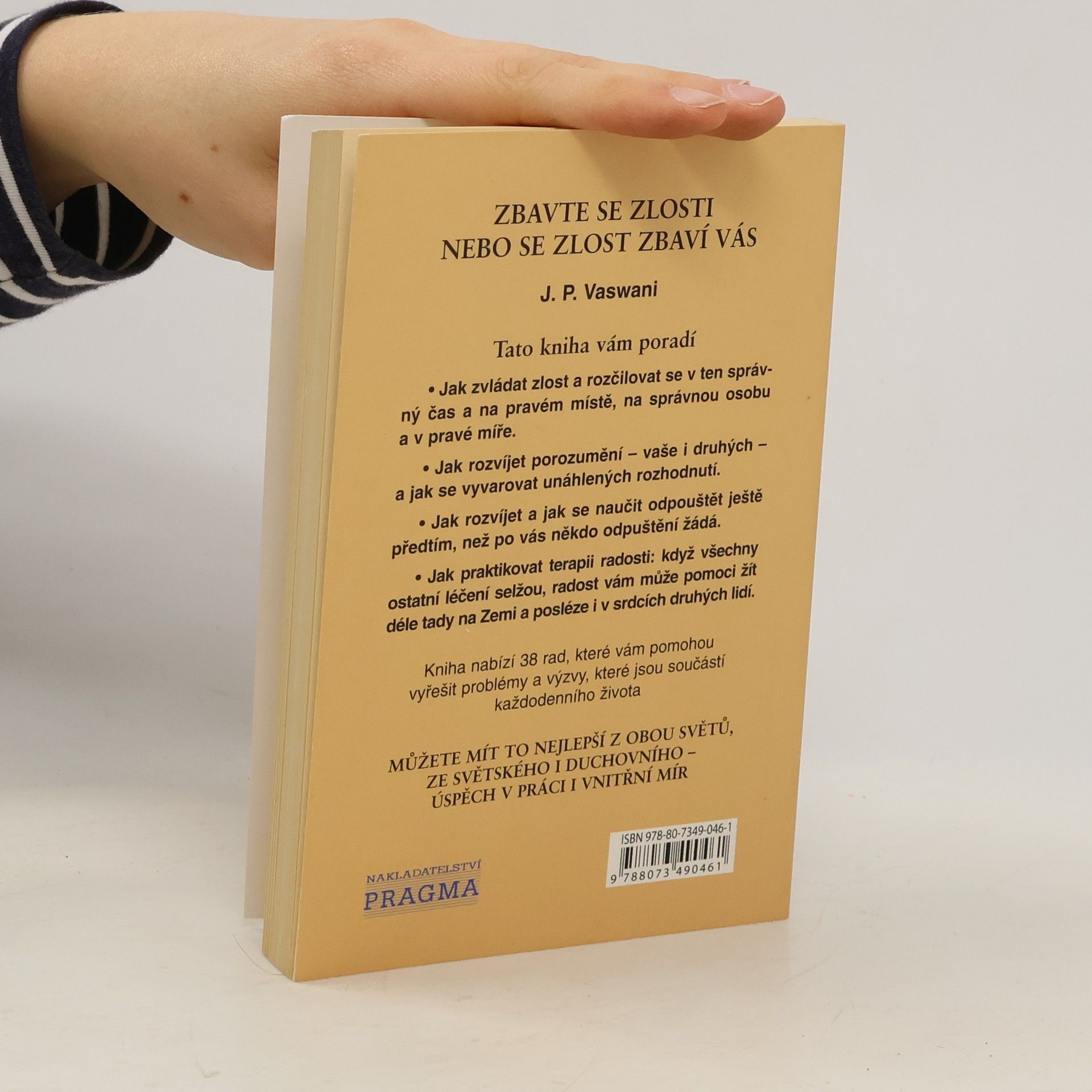 Jak zvládnout zlost a rozčilovat se v ten správný čas a na pravém místě, na správnou osobu a v pravé míře. Jak rozvíjet porozumění - vaše i druhých - a jak se vyvarovat unáhlených rozhodnutí. Jak rozvíjet a jak se naučit odpouštět ještě předtím, než po vás někdo odpuštění žádá. Jak praktikovat terapii radosti: radost vám může pomoci žít déle tady na Zemi a posléze i v srdcích druhých lidí.