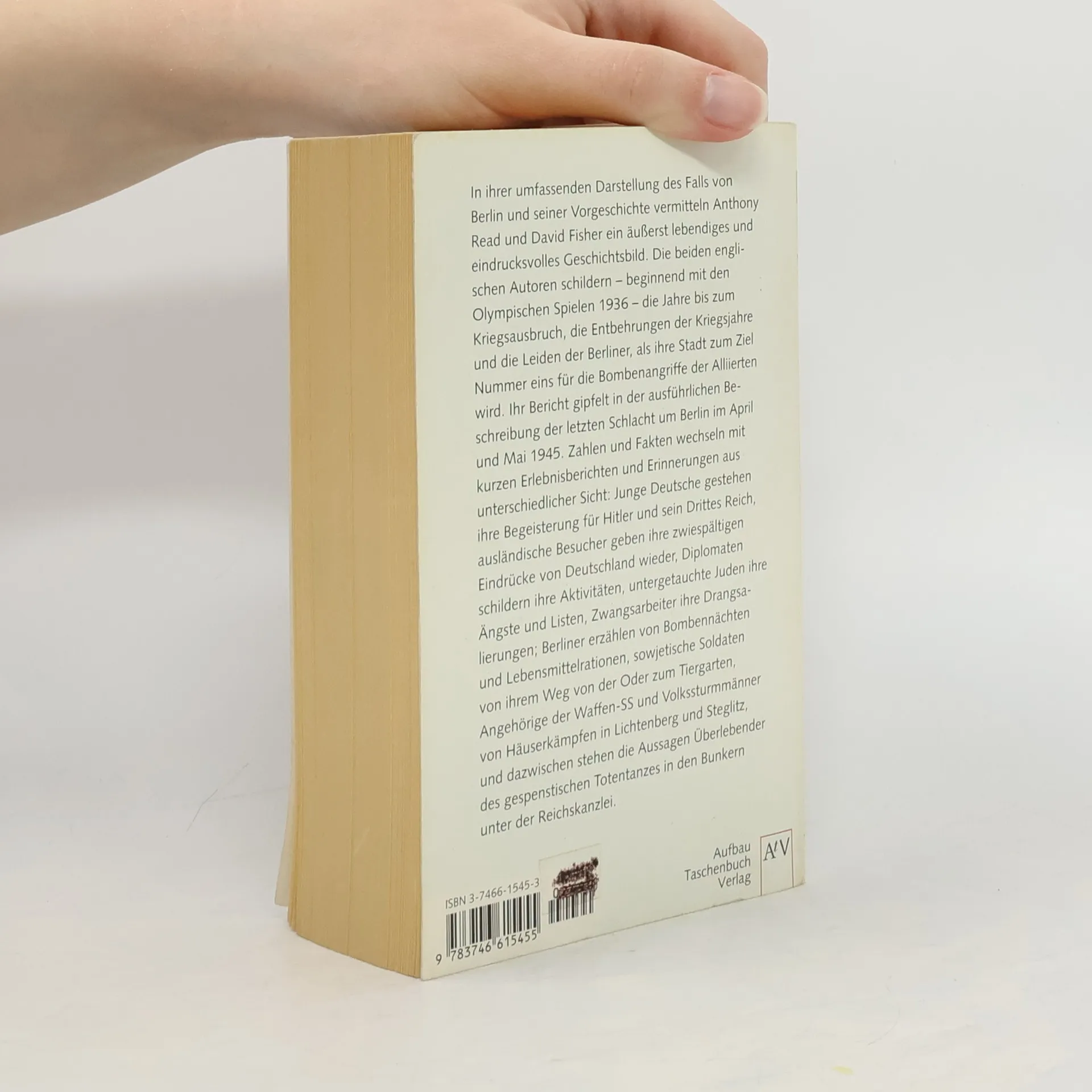 In ihrer Darstellung vom Fall Berlins, im Mai 1945, vermitteln Anthony Read und David Fisher ein eindrucksvolles Geschichtsbild. Beginnend mit den Olympischen Spielen 1936, schildern sie die Jahre bis zum Kriegsausbruch, die Entbehrungen und die Leiden der Berliner, als ihre Stadt den unzähligen Bombenangriffen der Alliierten ausgesetzt wird. Der dramatische Bericht findet seinen Höhepunkt in der Beschreibung der letzten Schlacht um Berlin, in der nicht ein Gebäude in der Innenstadt unversehrt blieb.