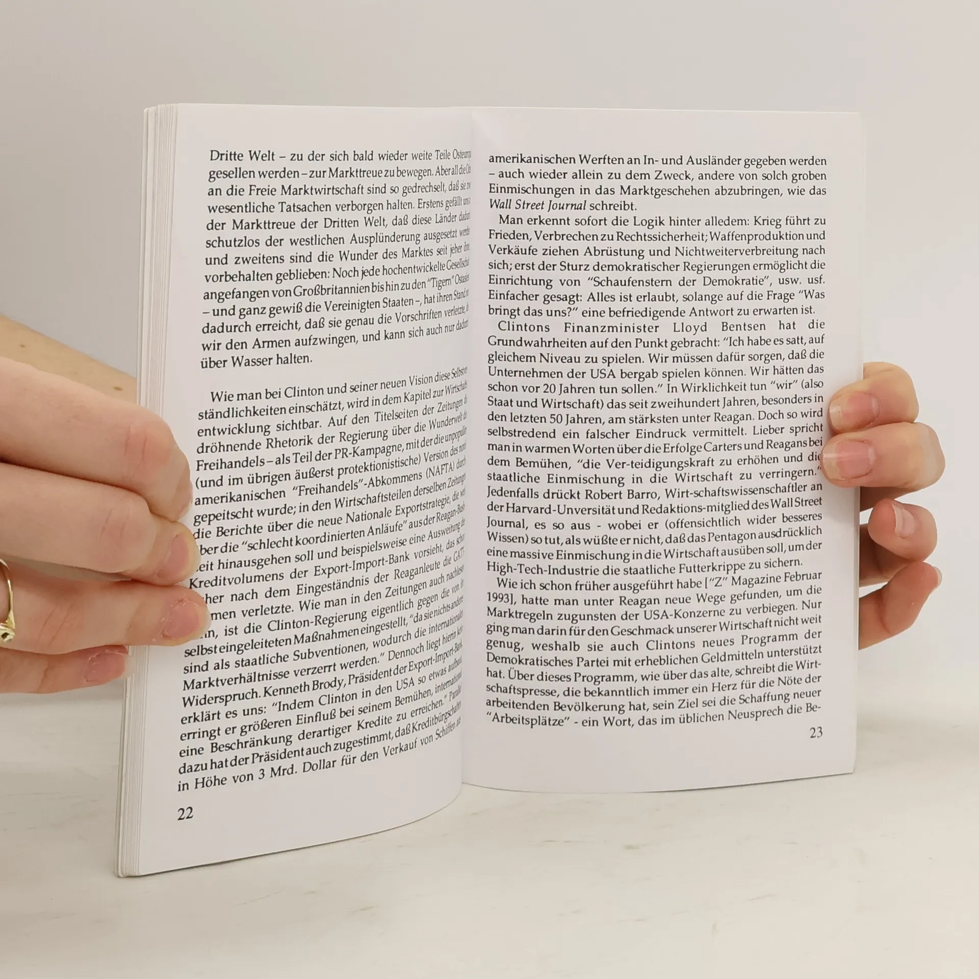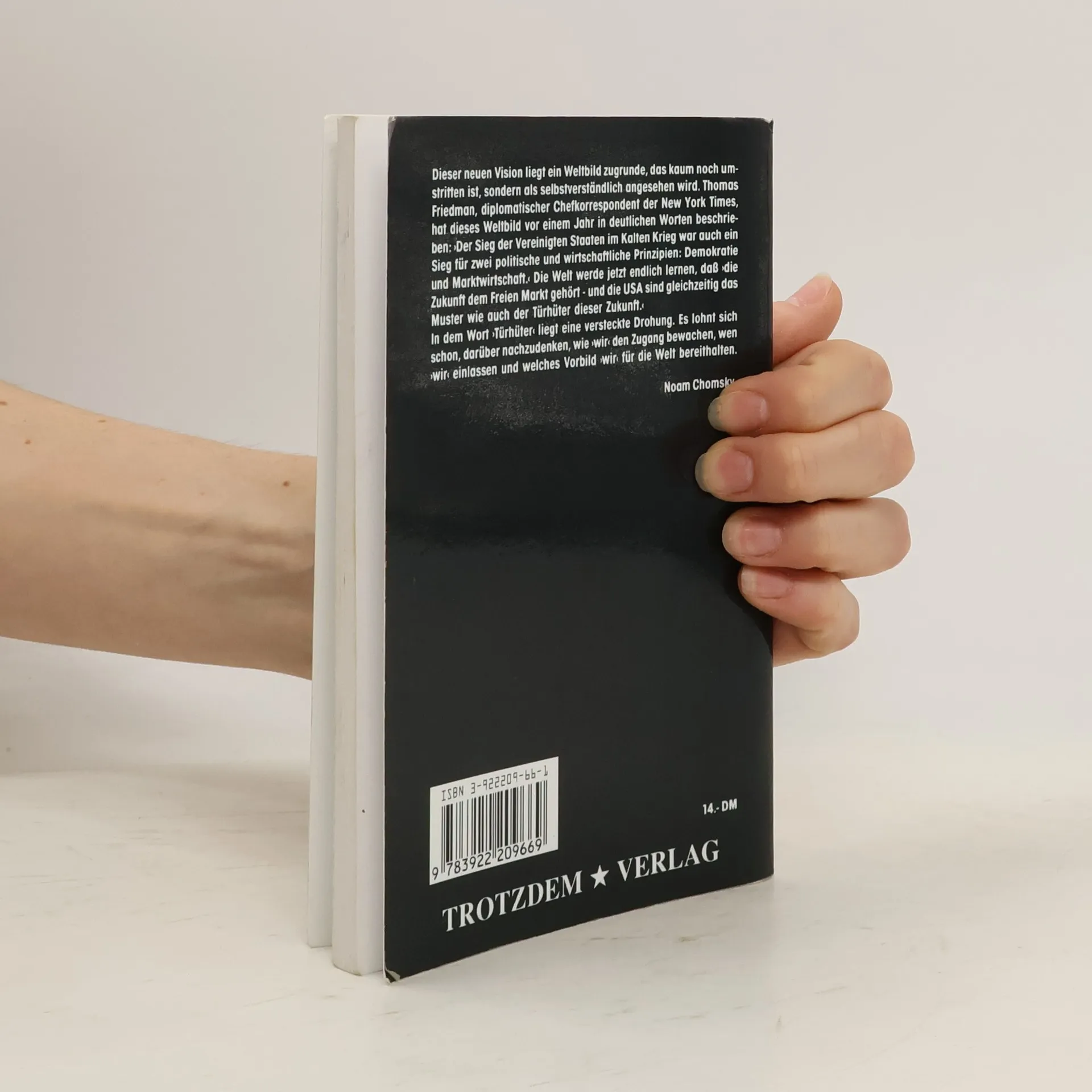 Dieser neuen Vision liegt ein Weltbild zugrunde, das kaum noch umstritten ist, sondern als selbstverständlich angesehen wird. Thomas Friedman, diplomatischer Chefkorrespondent der New York Times, hat dieses Weltbild vor einem Jahr in deutlichen Worten beschrieben: „Der Sieg der Vereinigten Staaten im Kalten Krieg war aueh ein Sieg für zwei politische und wirtschaftliche Prinzipien: Demokratie und Marktwirtschaft.“ Die Welt werde jetzt endlich lernen, daß „die Zukunft dem Freien Markt gehört – und die USA sind gleichzeitig das Muster wie auch der Türhüter dieser Zukunft.“ In dem Wort „Türhüter“ liegt eine versteckte Drohung. Es lohnt sich schon, darüber nachzudenken, wie „wir“ den Zugang bewachen, wen „wir“ einlassen und welches Vorbild „wir“ für die Welt bereithalten.