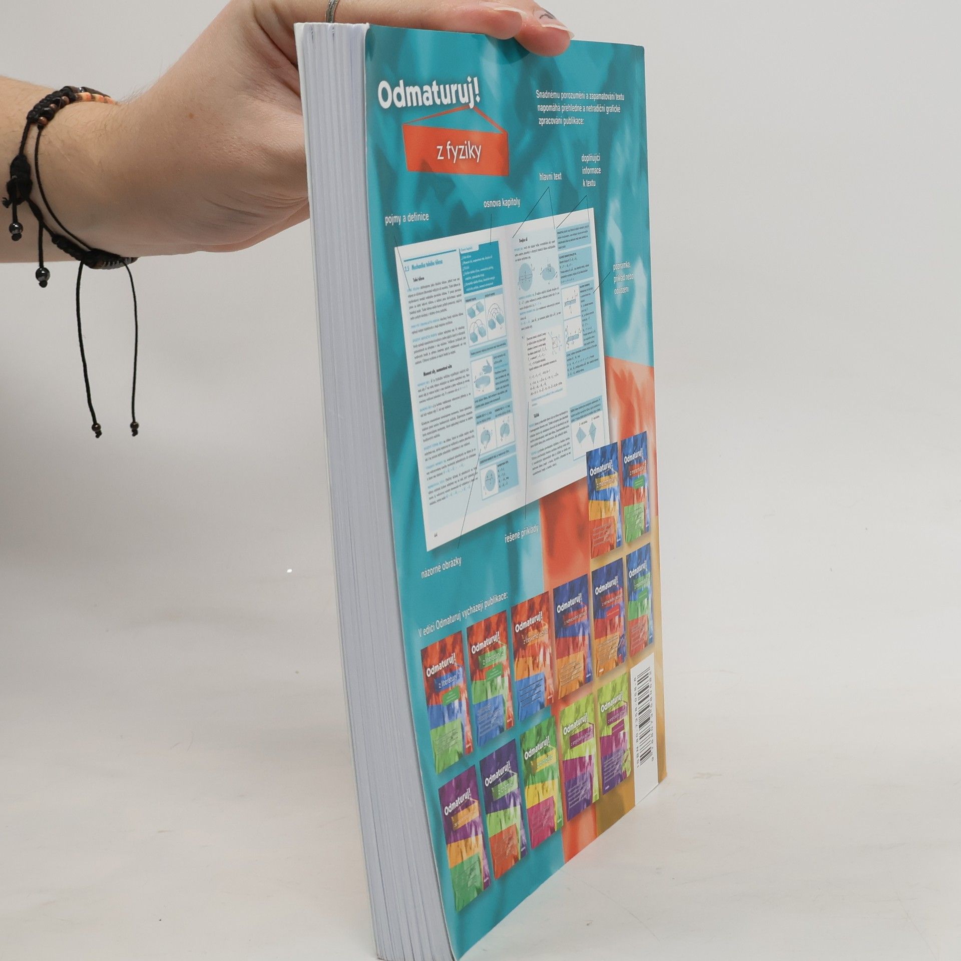 Poutavá učebnice určená k přípravě na maturitu (i k nové podobě maturity) a k přijímacím zkouškám na vysoké školy. Obsahuje celou středoškolskou látku fyziky – poznatky z mechaniky, kinematiky, dynamiky, termiky a termodynamiky, molekulové fyziky, elektřiny, magnetismu, optiky, teorie relativity, fyziky mikrosvěta a astrofyziky. Kniha je přehledně zpracována do 9 základních kapitol, které jsou dále členěny na menší podkapitoly a tematické celky.