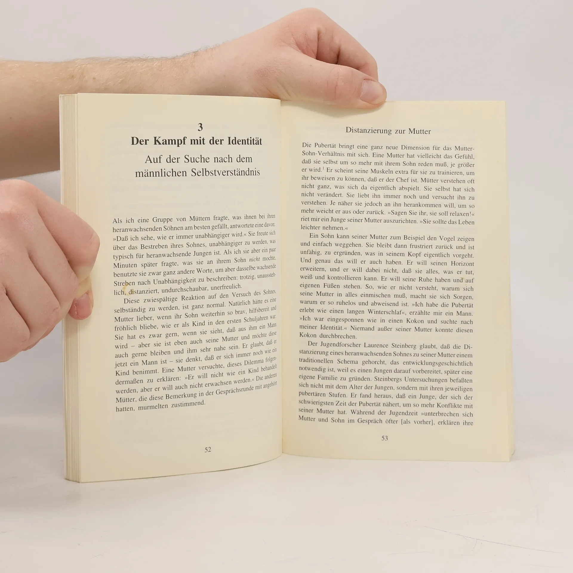 Nicht nur als Pendant zu einem früheren Buch geplant (vgl. 'Töchter werden junge Frauen', BA 8/92); sondern die große Nachfrage aus Elterngesprächskreisen veranlaßte die Autorin, sich mit der Pubertät von Jungen genauer zu beschäftigen. Die Psychologin, selber Mutter von 4 Söhnen und 2 Töchtern, hat viele Gesprächsprotokolle mit verwandten, befreundeten und anderweitig befragten Heranwachsenden ausgewertet und zu einer gründlichen, gut lesbaren Darstellung über die männliche Pubertät verarbeitet. Vor allem die persönlichen Erfahrungen und Schlußfolgerungen machen das Buch zu einem verständnisvollen, praktikablen Ratgeber in einer schwierigen Entwicklungsphase, weil junge Männer erfahrungsgemäß nur sehr unwillig über ihre emotionale Befindlichkeit Auskunft geben. Vgl. auch D. Elium: 'Söhne erziehen' (BA 9/94), C. Nitsch: 'Pubertät? Kein Grund zur Panik!' (BA 9/95), A. Phillips: 'Warum Männer nicht weinen' (BA 10/95) oder T. Rohrmann: 'Junge, Junge...' (BA 9/94). (1).