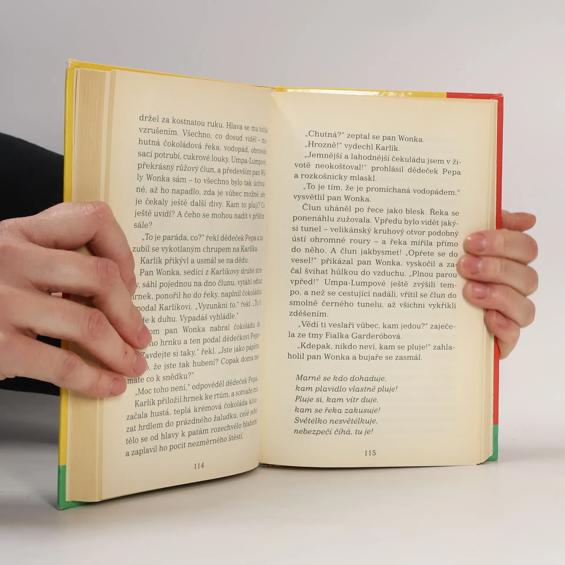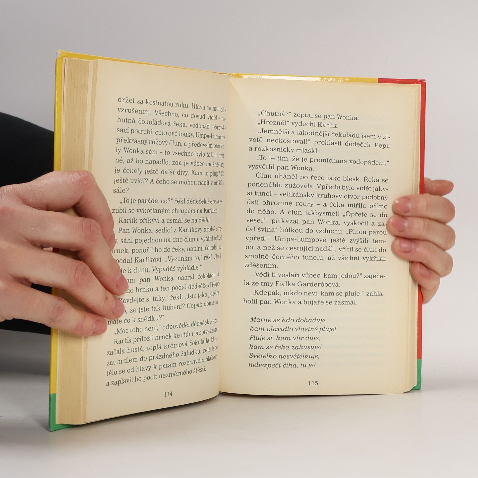 Moderní pohádka nabitá fantazií, hravostí a jemným humorem je nejslavnější dětskou knížkou Roalda Dahla. Autor v ní splnil dětský sen mnohým z nás: spolu s pěti dětmi, hrdiny této knížky, provádí čtenáře kouzelným světem největší továrny na sladkosti na světě, kde se čokoláda míchá vodopádem na čokoládové řece, kde v mnoha zajímavých sálech vznikají ty nejúžasnější dobroty a kde se dají zažít vskutku neočekávaná dobrodružství.
