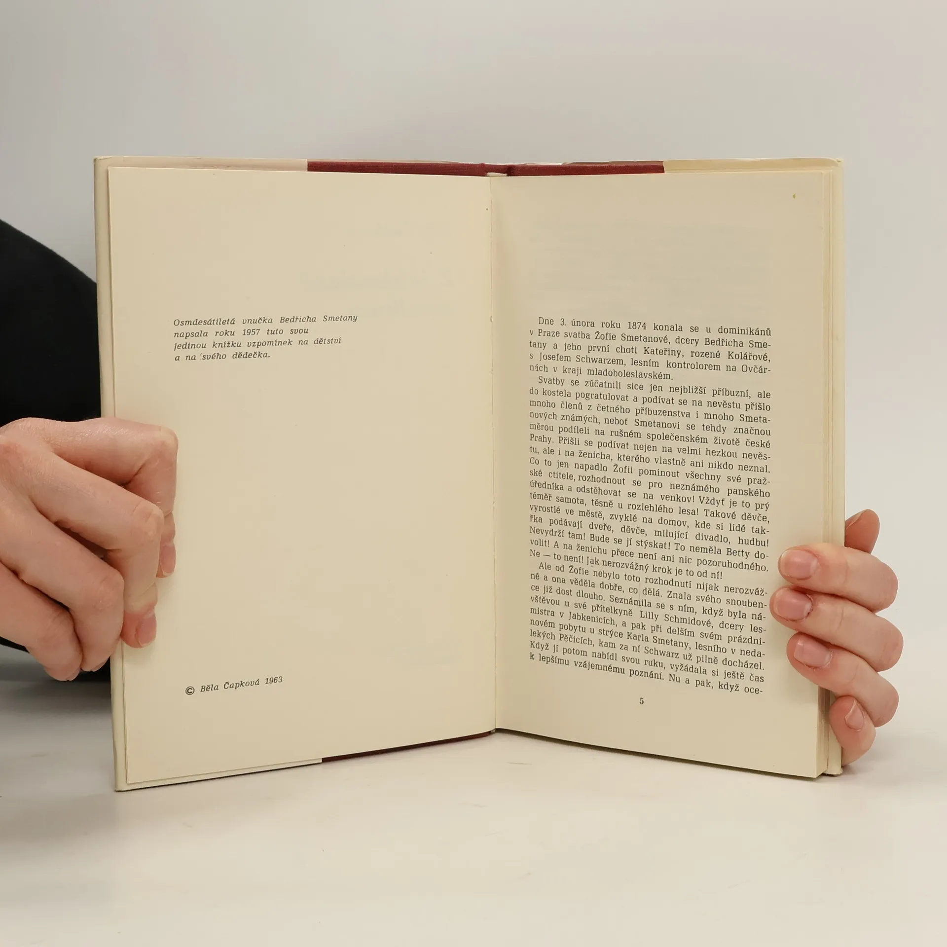 Vzpomínky na dětství v jabkenické myslivně, které napsala vnučka Bedřicha Smetany v r. 1957, přibližují skladatelův život v nárysu od jeho začínající hluchoty v r. 1874 a dokreslují jej dokumentárním svědectvím z posledních let žití. Vyprávění načrtává i portrét ovdovělé Betty Smetanové a líčí sled typických zvyků a rodinných tradic v jabkenické myslivně v průběhu roku.