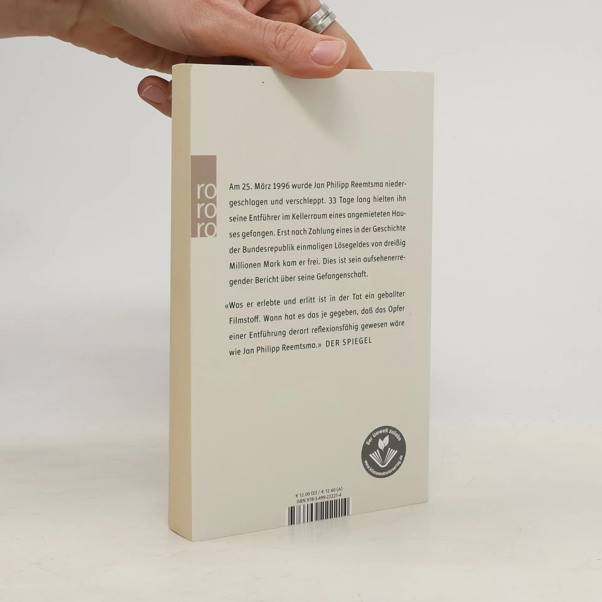 Am 25. März 1996 wurde Jan Philipp Reemtsma entführt. Erst nach Zahlung eines Lösegeldes von 30 Millionen Mark kam er frei. Dies ist sein aufregender Bericht über seine Gefangenschaft.