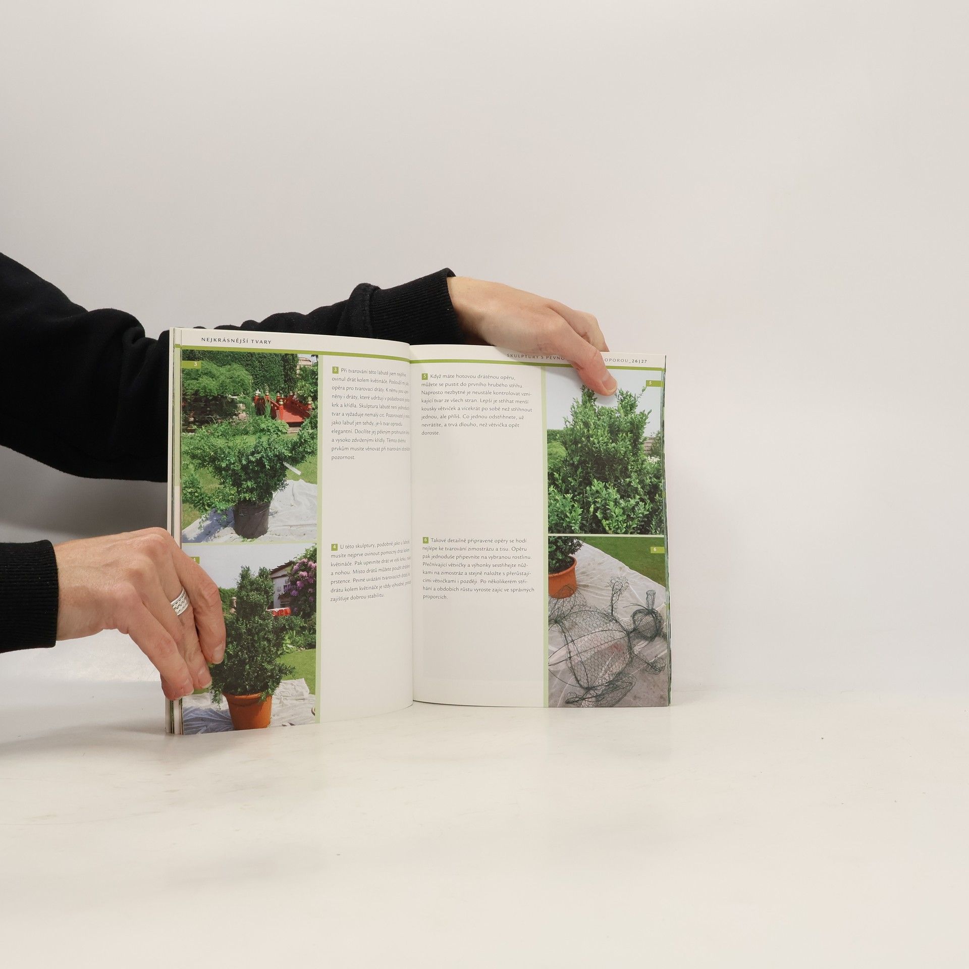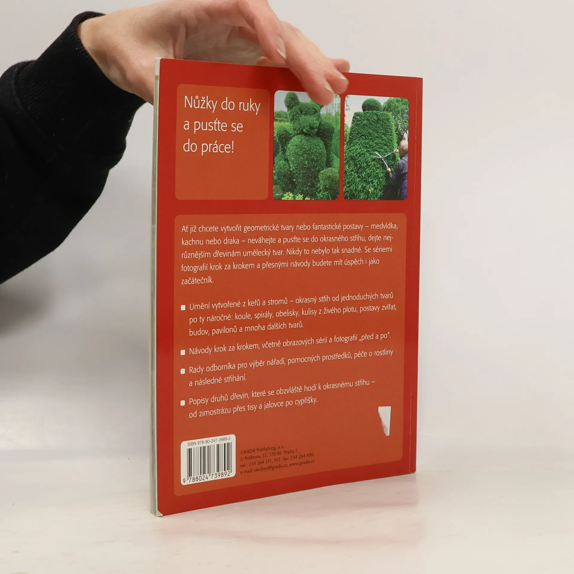 Jednoduché geometické tvary, fantazijní postavy jako medvídek, kachna či drak - tvarování dřevin je zde vysvětleno velmi podrobně a jednoduše, krok za krokem. Postup je znázorněn a fotografiích, podle kterých snadno dosáhnete úspěchu. V knize je popsáno umění tvarovat keře a stromy do koule, spirály, obelisku, tvarovaného plotu, do tvaru budovy či altánku. Autor, zkušený zahradník, vám vše vysvětlí tak, že si budete moci proměnit svou zahradu podle vlastních představ.