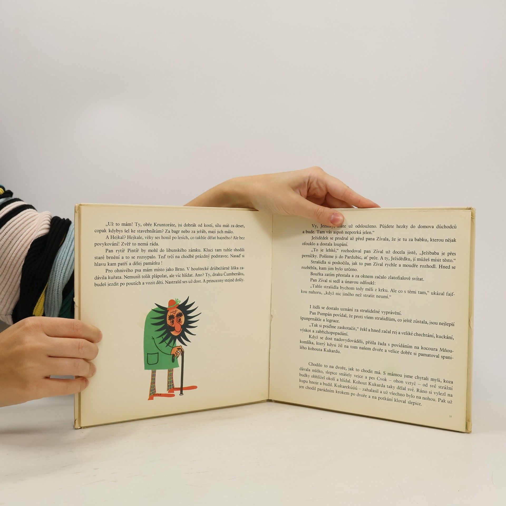 Partu pana Pumpána, dobromyslného dědy bydlícího v domku blízko lesa, tvoří "několik čtvernožců - stůl, židle, postel, kocour Mňoukomlík, pes Hafištěk, a dvounožec - pták Pipilitík". Je to veselá parta, která si v zimě vypráví pohádky: pan Pumpán o lidech i zvířatech, čtvernohé věci o zkušenostech s lidmi a zvířata o zvířatech. Jde o příběhy poučné i výchovné, kárající povýšenost, domýšlivost, zvůli a hloupost.