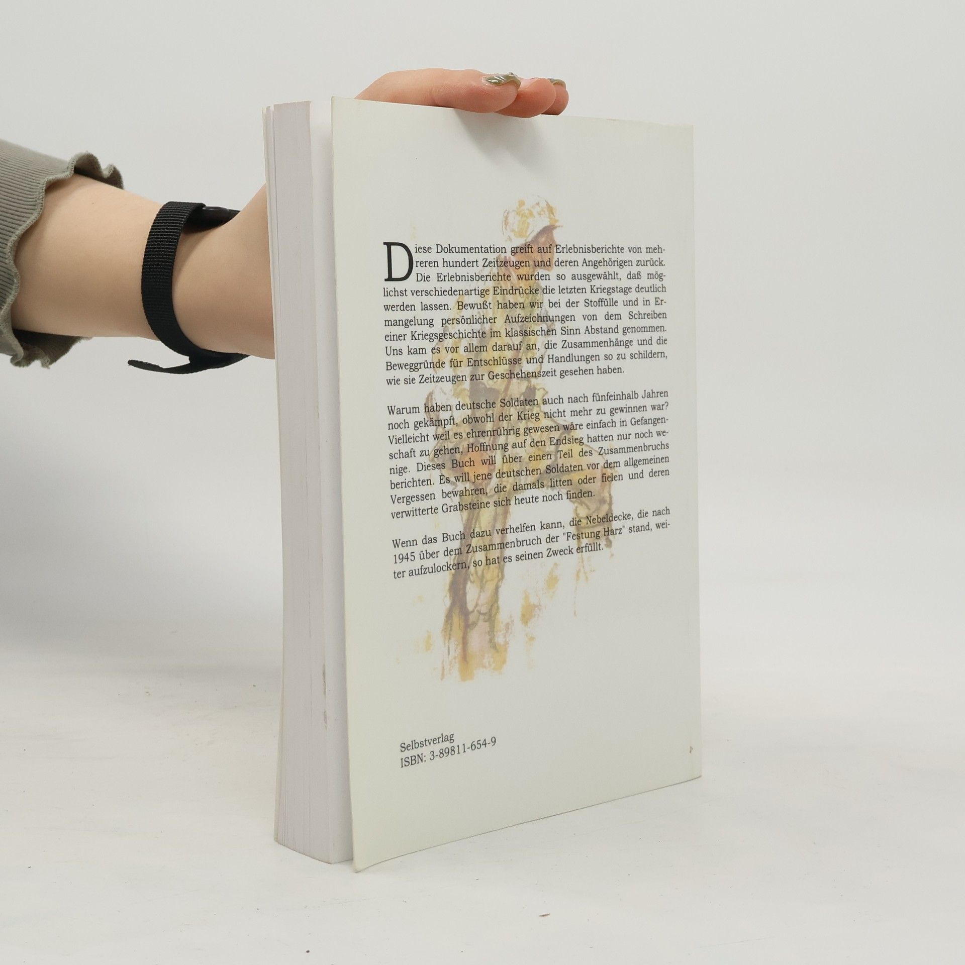 "Diese Dokumentation greift auf Erlebnisberichte von mehreren hundert Zeitzeugen und deren Angehörigen zurück. Die Erlebnisberichte wurden so ausgewählt, daß möglichst verschiedenartige Eindrücke die letzten Kriegstage deutlich werden lassen. ... Uns kam es vor allem darauf an, die Zusammenhänge und die Beweggründe für Entschlüsse und Handlungen so zu schildern, wie sie Zeitzeugen zur Geschehenszeit gesehen haben. ... Dieses Buch will über einen Teil des Zusammenbruchs berichten. Es will jene deutschen Soldaten vor dem allgemeinen Vergessen bewahren, die damals litten oder fielen und deren verwitterte Grabsteine sich heute noch finden..."