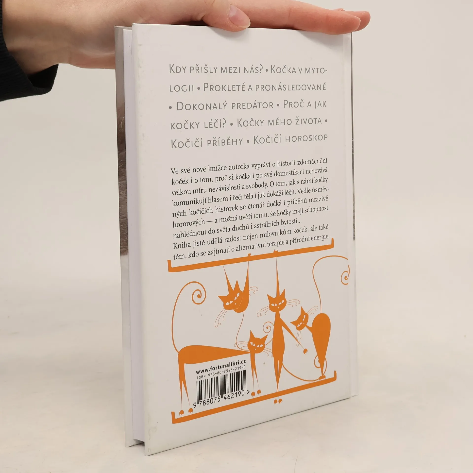 Ve své nové knížce autorka vypráví o historii zdomácnění koček i o tom, proč si kočka i po své domestikaci uchovává velkou míru nezávislosti a svobody. O tom, jak s námi kočky komunikují hlasem i řečí těla i jak dokáží léčit. Vedle úsměvných kočičích historek se čtenář dočká i příběhů mrazivě hororových — a možná uvěří tomu, že kočky mají schopnost nahlédnout do světa duchů i astrálních bytostí… Kniha jistě udělá radost nejen milovníkům koček, ale také těm, kdo se zajímají o alternativní terapie a přírodní energie.