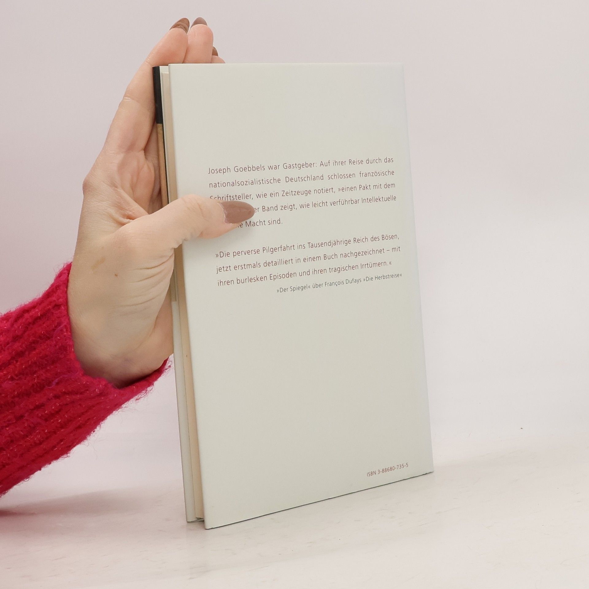 Am Abend des 4. Oktober 1941 reist eine Gruppe französischer Schriftsteller vom Pariser Gare de l'Est nach Deutschland. Unter ihnen sind überzeugte Faschisten wie Drieu la Rochelle und Robert Brassilach sowie apolitische Autoren wie Jacques Chardonne und Marcel Jouhandeau. Begleitet von Gerhard Heller, der für das „Schrifttum“ der deutschen Besatzung zuständig ist, besucht die Gruppe zunächst den Rhein, das Beethoven-Haus in Bonn und Goethes Geburtshaus in Frankfurt. Die Reise führt weiter nach München, Salzburg und Wien, wo sie von Reichsstatthalter Baldur von Schirach empfangen werden. In Berlin besichtigen sie Hitlers Arbeitszimmer in der Reichskanzlei, während Joseph Goebbels sie provokant fragt, wie viele zerbombte Häuser sie gesehen haben. Die Reise offenbart, wie die Kollaboration das Denken der französischen Schriftsteller beeinflusst. Jouhandeau äußert: „Ich fühle mich unseren ehemaligen deutschen Feinden instinktiv tausend Mal näher als all diesem vorgeblich französisch-jüdischen Pack.“ François Dufay analysiert anhand unveröffentlichter Aufzeichnungen den äußeren Verlauf der Reise und die innere Kompromittierung der Intellektuellen durch den Nationalsozialismus. Die französischen Schriftsteller schließen einen Pakt mit dem Teufel und verdeutlichen den historischen Kontext der literarischen Kollaboration.