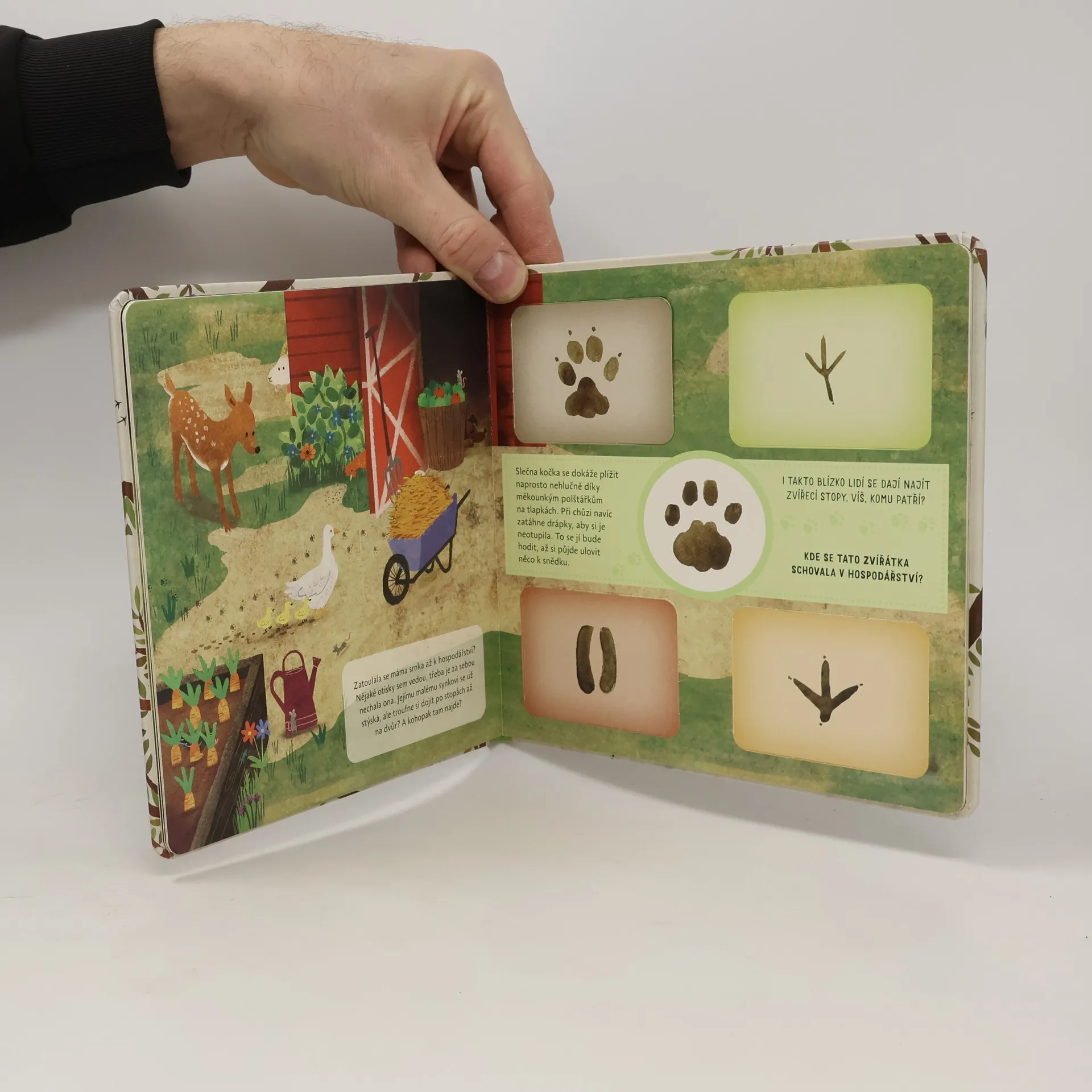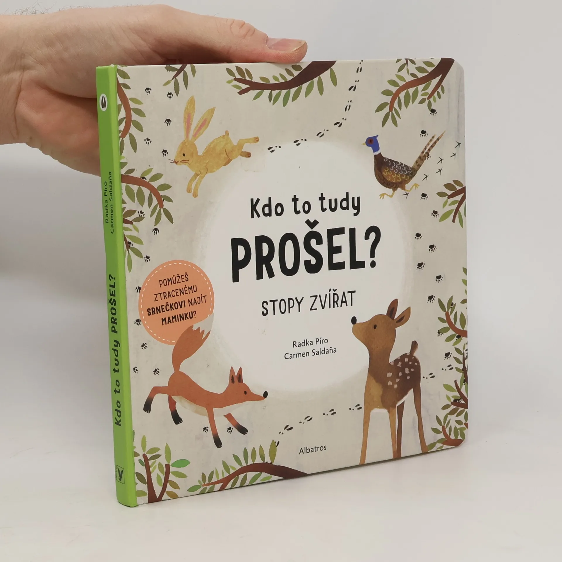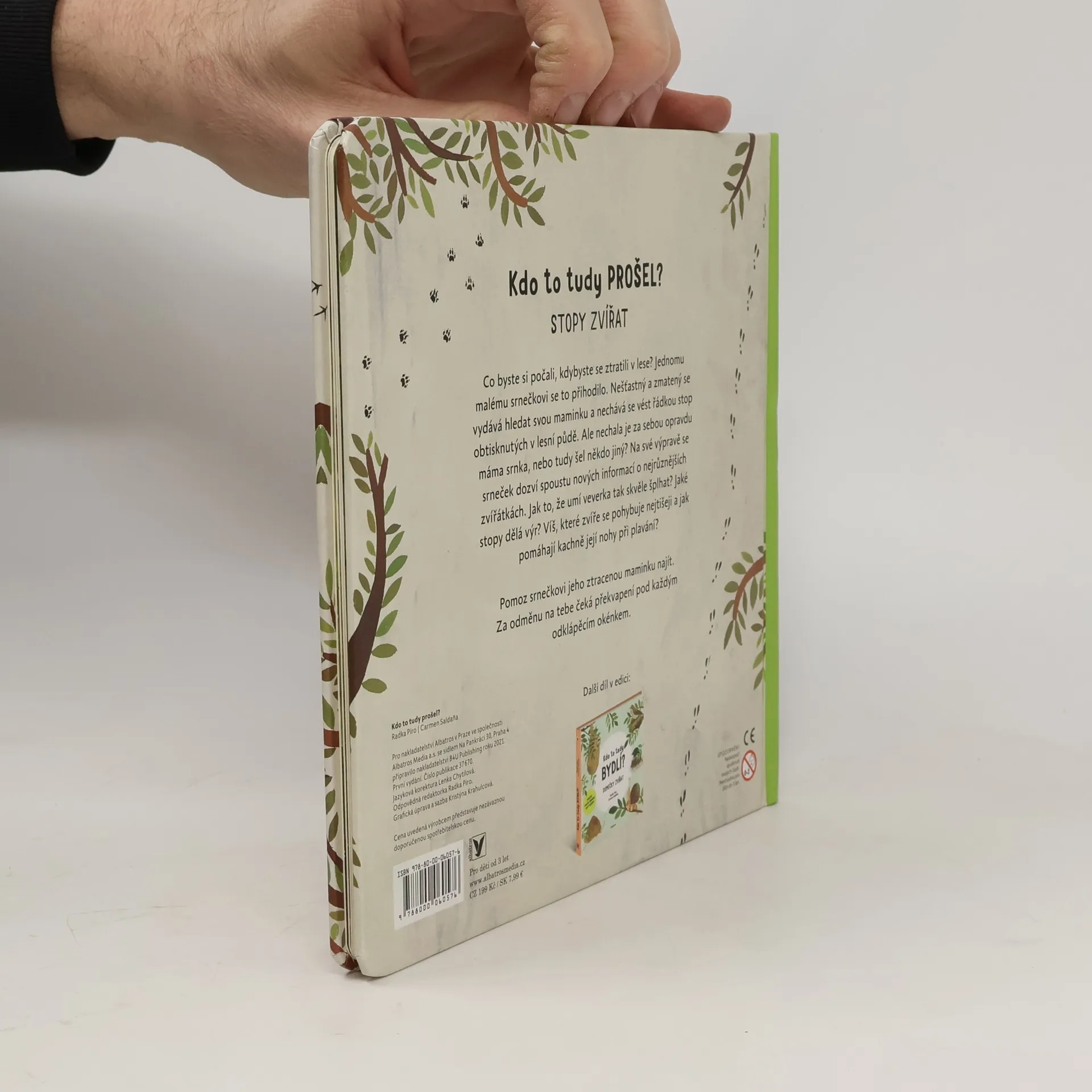 Co byste si počali, kdybyste se ztratili v lese? Jednomu malému srnečkovi se to přihodilo. Nešťastný a zmatený se vydává hledat svou maminku a nechává se vést řádkou stop obtisknutých v lesní půdě. Ale nechala je za sebou opravdu máma srnka, nebo tudy šel někdo jiný? Na své výpravě se srneček dozví spoustu nových informací o stopách nejrůznějších zvířátek. Vydej se spolu s ním na cestu a nech se překvapit, jaké stopy a šlápoty ve zvířecí říši existují.