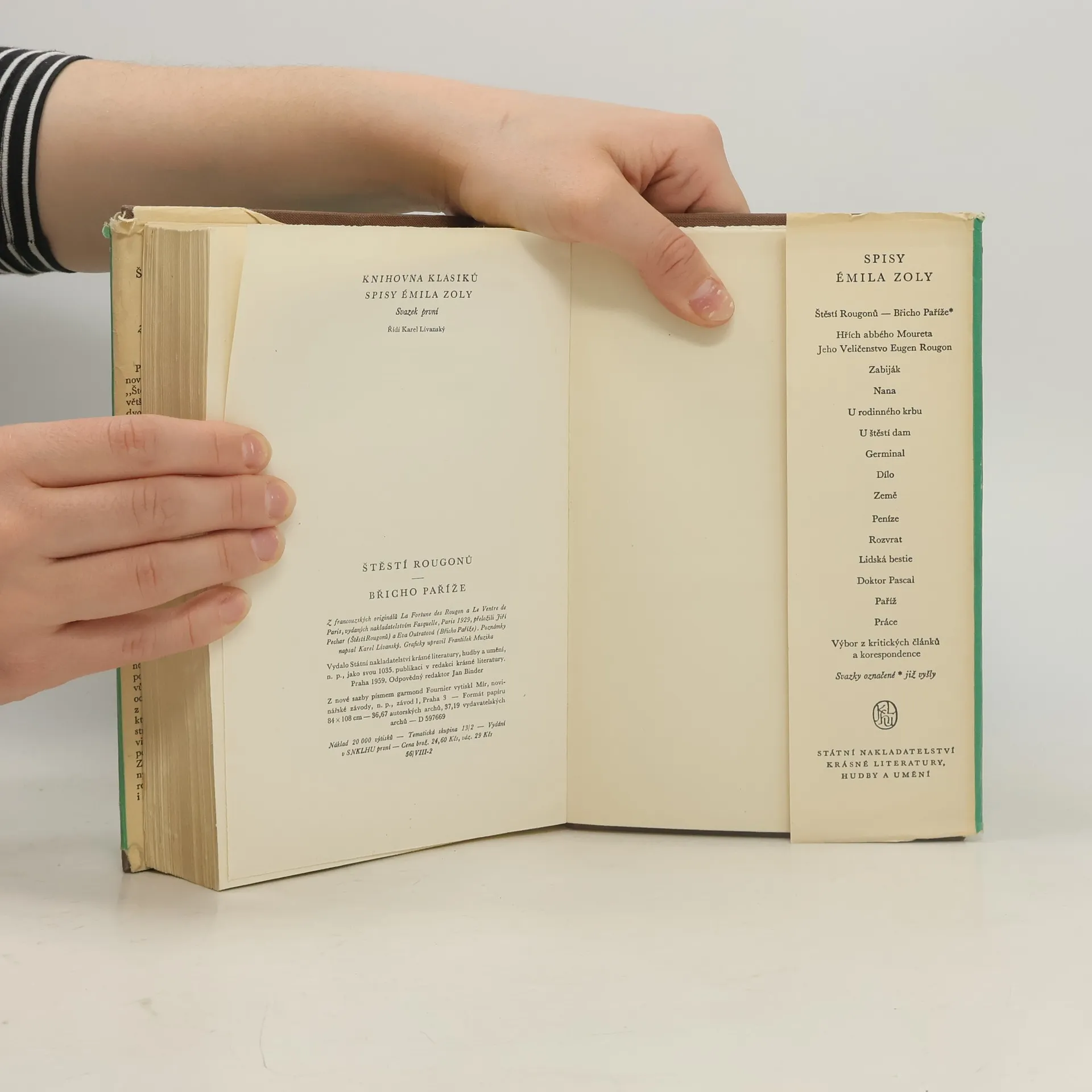 První svazek Zolova slavného cyklu Rougonů-Macquartů Štěstí Rougonů uvádí na scénu již většinu osob, které mají pak v dalších dvou desítkách těchto „studií jednoho rodu za druhého císařství“ hlavní úlohu. Břicho Paříže je barvitou epopejí ústřední pařížské tržnice.Spisy Émila Zoly – Svazek první