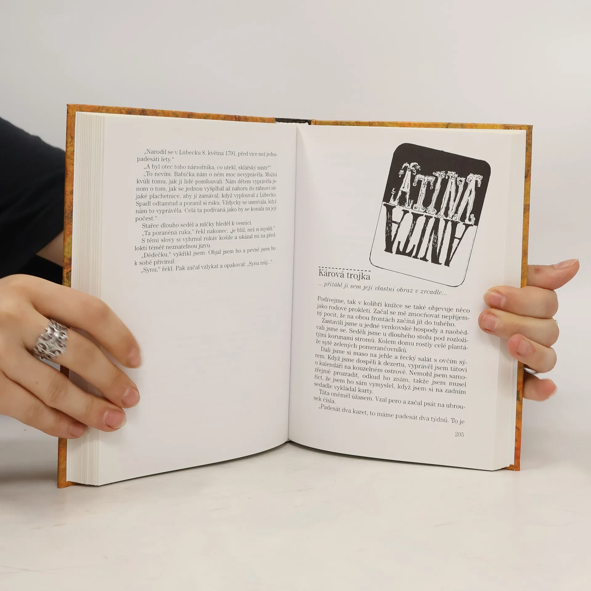 Dvanáctiletý Hans Thomas jede se svým otcem do Athén, kde se chtějí pokusit najít maminku, která od nich utekla, když byly Hansovi čtyři roky. Za záhadných okolností cestou přes švýcarské Alpy dostane chlapec od neznámého muže ve vesnici Dorf malinkatou kolibří knížečku. Kniha ho přivádí na tajuplný ostrov oživlých karet a Hansovi se pozvolna začíná příběh plný fantazie prolínat s realitou. Půvabný, originální román nenásilně nutí čtenáře položit si otázku po smyslu vlastního života.