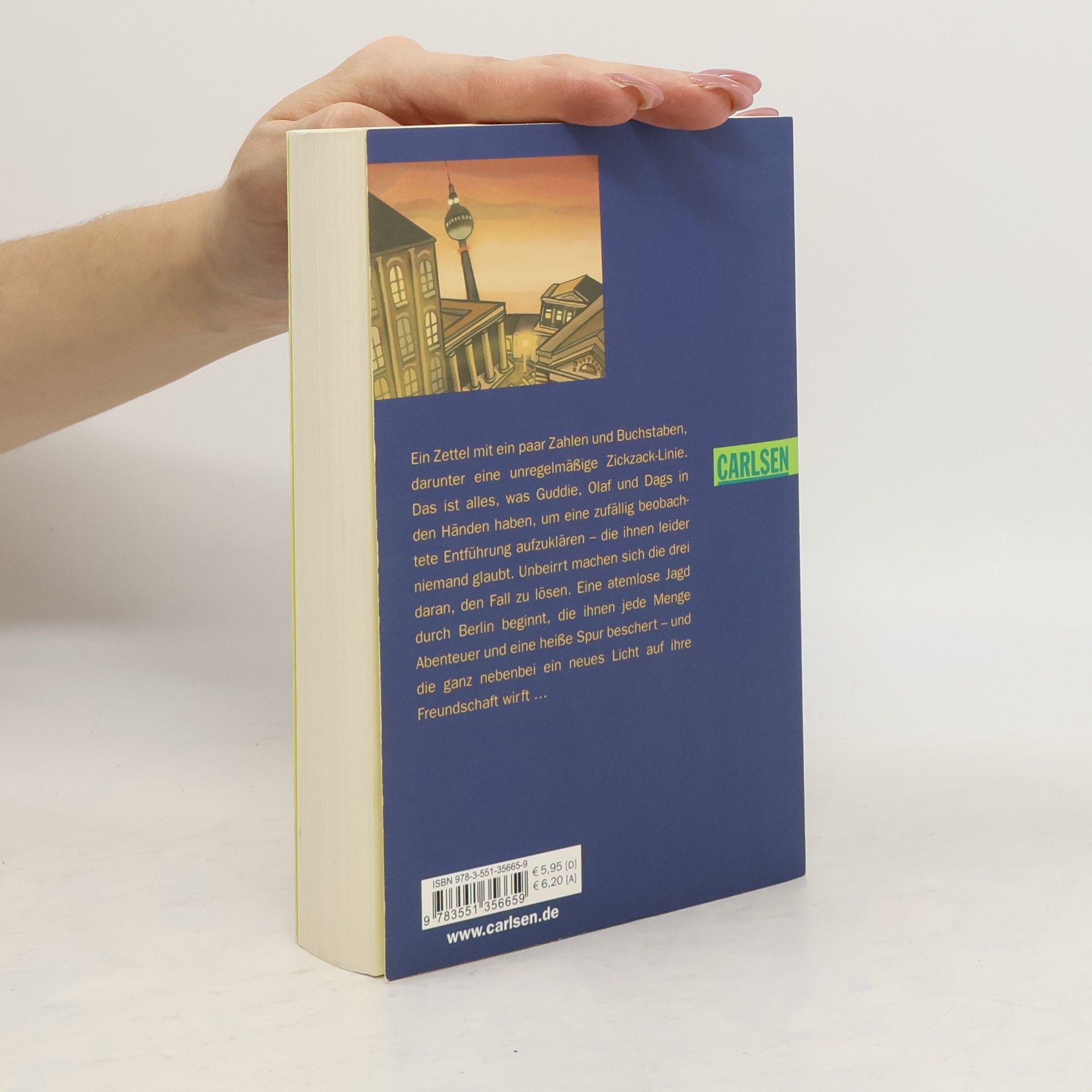 Ein Zettel mit ein paar Zahlen und Buchstaben, darunter eine unregelmäßige Zickzack-Linie. Das ist alles, was Guddie, Olaf und Dags in den Händen haben, um eine zufällig beobachtete Entführung aufzuklären – die ihnen leider niemand glaubt. Unbeirrt machen sich die drei daran, den Fall zu lösen. Eine atemlose Jagd durch Berlin beginnt, die ihnen jede Menge Abenteuer und eine heiße Spur beschert – und die ganz nebenbei ein neues Licht auf ihre Freundschaft wirft …