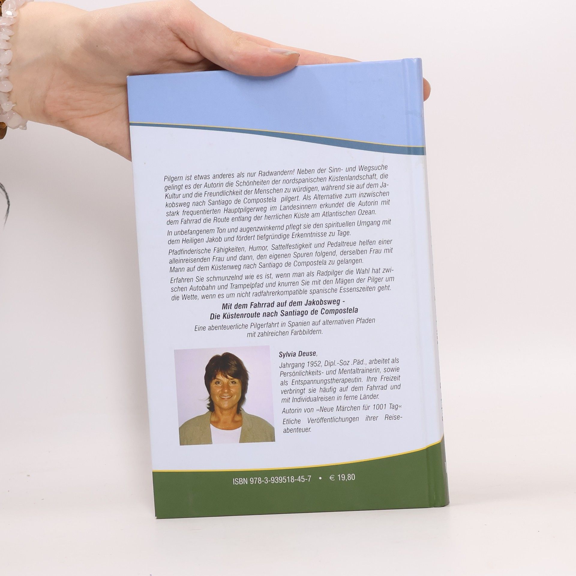 Pilgern ist etwas anderes als nur Radwandern! Neben der Sinn- und Wegsuche gelingt es der Autorin die Schönheiten der nordspanischen Küstenlandschaft, die Kultur und die Freundlichkeit der Menschen zu würdigen, während sie auf dem Jakobsweg nach Santiago de Compostela pilgert. Als Alternative zum inzwischen stark frequentierten Hauptpilgerweg im Landesinnern erkundet die Autorin mit dem Fahrrad die Route entlang der herrlichen Küste am Atlantischen Ozean. In unbefangenem Ton und augenzwinkernd pflegt sie den spirituellen Umgang mit dem Heiligen Jakob und fördert tiefgründige Erkenntnisse zu Tage. Pfadfinderische Fähigkeiten, Humor, Sattelfestigkeit und Pedaltreue helfen einer alleinreisenden Frau und dann, den eigenen Spuren folgend, derselben Frau mit Mann auf dem Küstenweg nach Santiago de Compostela zu gelangen. Erfahren Sie schmunzelnd wie es ist, wenn man als Radpilger die Wahl hat zwischen Autobahn und Trampelpfad und knurren Sie mit den Mägen der Pilger um die Wette, wenn es um nicht radfahrerkompatible spanische Essenszeiten geht. Die Autorin, Jahrgang 1952, Dipl. Soz. Päd. Arbeitet als Persönlichkeits- und Mentaltrainerin, sowie als Entspannungstherapeutin. Ihre Freizeit verbringt sie häufig auf dem Fahrrad und mit Individualreisen in ferne Länder. Autorin von „Neue Märchen für 1001 Tag“ Etliche Veröffentlichungen ihrer Reiseabenteuer.
