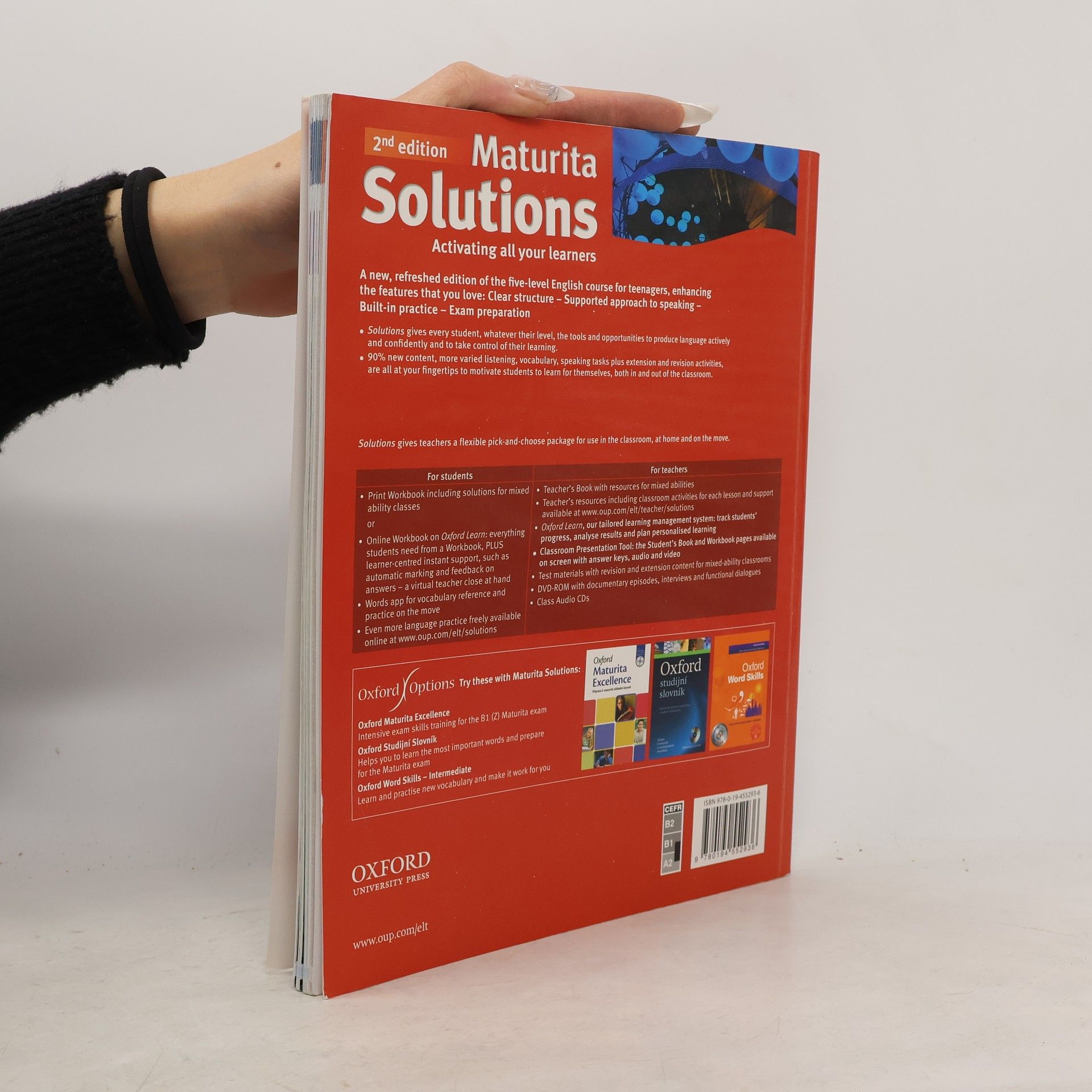 Učebnice. Zcela nový pětidílný kurz určený pro studenty českých středních škol, kteří se připravují na NOVOU MATURITU z anglického jazyka. - přehledná, jednoduchá stavba lekce: jedna stránka = jedna 45minutová hodina probírá a procvičuje maturitní témata - GET READY FOR MATURITA - připravuje na všechny části a na obě úrovně NOVÉ MATURITY - v metodické příručce je mnoho kopírovatelných doplňkových materiálů a nápadů pro mixed-ability classes