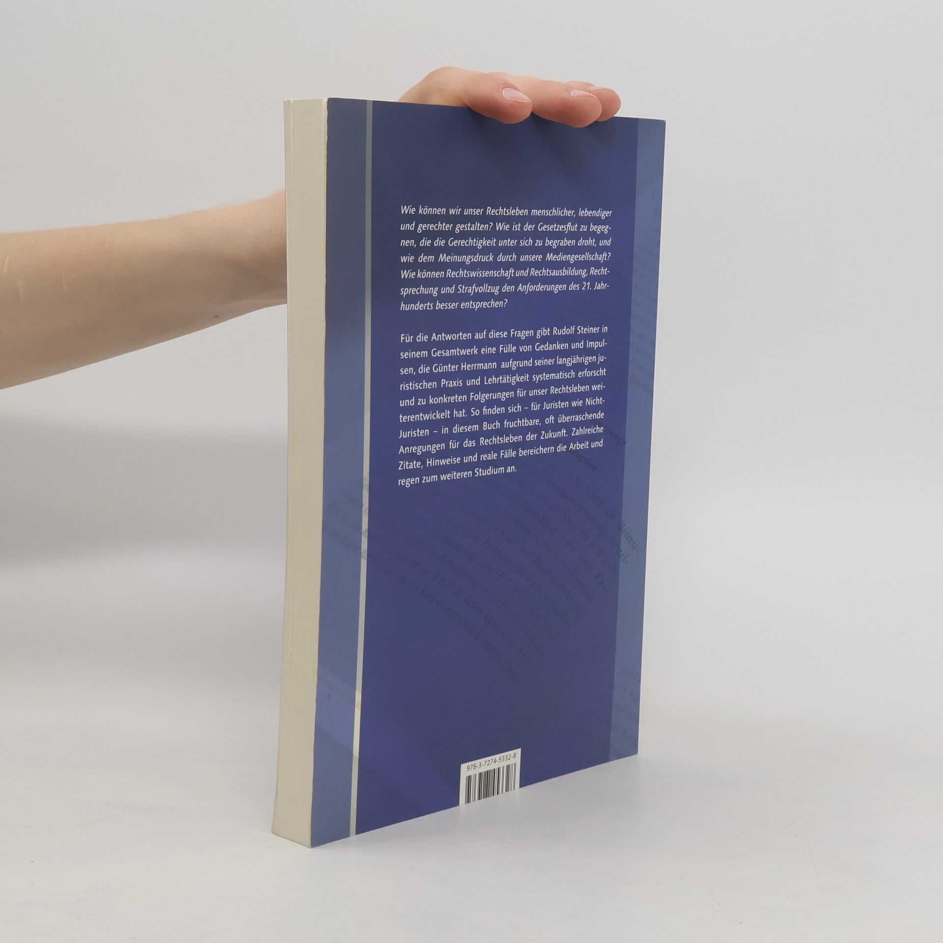 Wie können wir unser Rechtsleben menschlicher, lebendiger und gerechter gestalten? Wie ist der Gesetzesflut zu begegnen, die die Gerechtigkeit unter sich zu begraben droht, und wie dem Meinungsdruck durch unsere Mediengesellschaft? Wie können Rechtswissenschaft und Rechtsausbildung, Rechtsprechung und Strafvollzug den Anforderungen des 21. Jahrhunderts besser entsprechen? Für die Antworten auf diese Fragen gibt Rudolf Steiner in seinem Gesamtwerk eine Fülle von Gedanken und Impulsen, die Günter Herrmann systematisch erforscht und aufgrund seiner langjährigen juristischen Praxis und Lehrtätigkeit zu konkreten Folgerungen für unser Rechtsleben weiterentwickelt hat.