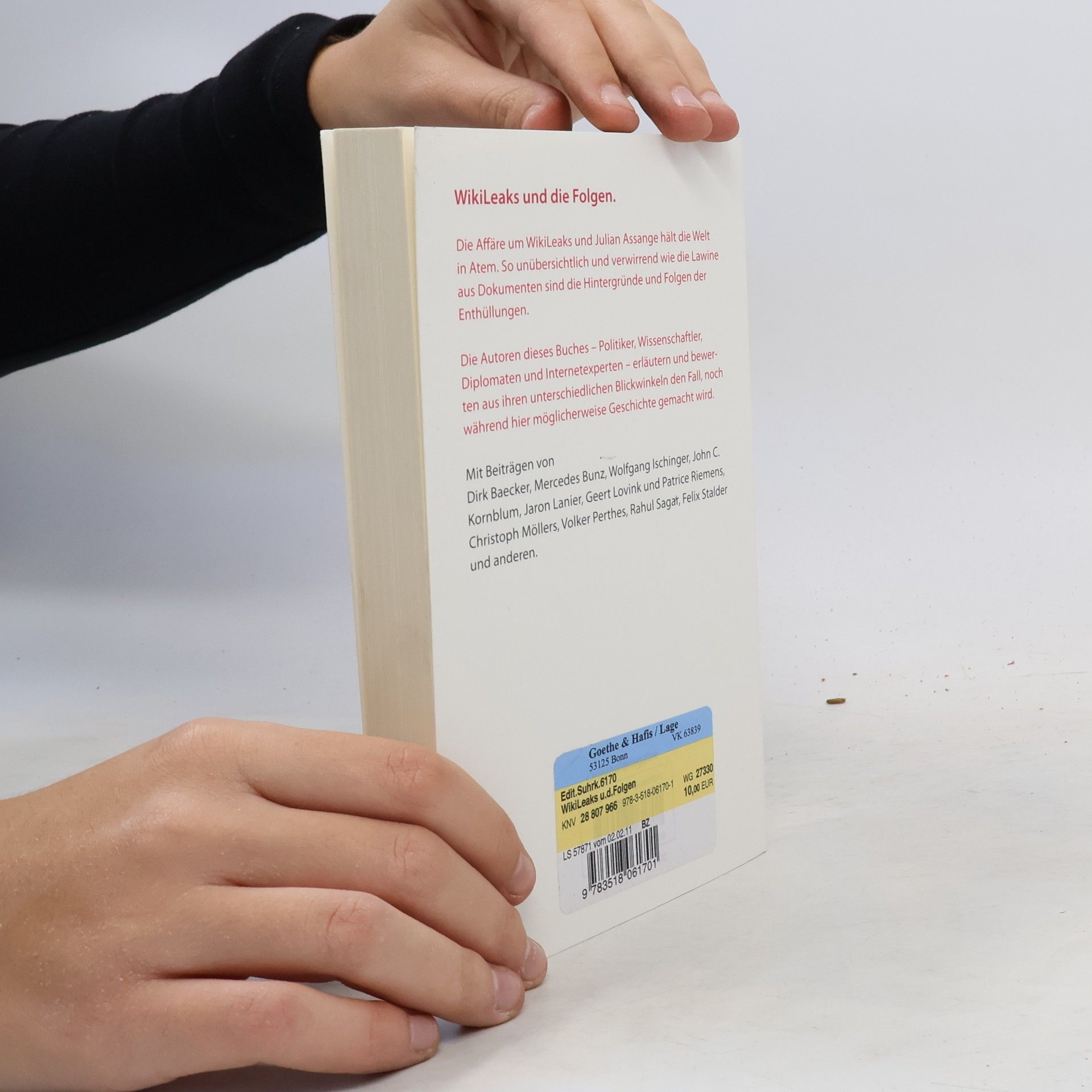 Ein Plot wie aus einem Agententhriller: Ein undurchsichtiger Hackerkönig veröffentlicht Hunderttausende geheimer Dokumente und löst damit internationale Verwicklungen aus. Was noch vor einem Jahr ein unrealistisches Szenario gewesen wäre, läuft plötzlich in Echtzeit vor unseren Augen ab, die Affäre um WikiLeaks und Julian Assange hält die Welt in Atem. So unübersichtlich und verwirrend wie die Lawine aus Dokumenten sind die Hintergründe und Folgen von WikiLeaks: Was sind die Motive Julian Assanges? Geht es ihm um demokratische Transparenz? Oder um die »krypto-anarchistische« Weltrevolution? Wer soll all die Akten und Depeschen auswerten? Und: Welche Folgen hat die Affäre für die Politik? Erleben wir das Ende der Geheimdiplomatie oder den Anfang einer viel geheimeren Diplomatie? Die Autoren versuchen in ausführlichen Hintergrundanalysen und Kommentaren, aus unterschiedlichen Blickwinkeln Schneisen ins diskursive Durcheinander zu schlagen, noch während hier möglicherweise Geschichte gemacht wird. Mit Beiträgen von: Dirk Baecker, Mercedes Bunz, Wolfgang Ischinger, John Kornblum, Jaron Lanier, Geert Lovink und Patrice Riemens, Christoph Möllers, Volker Perthes, Rahul Sagar, Felix Stalder und anderen.