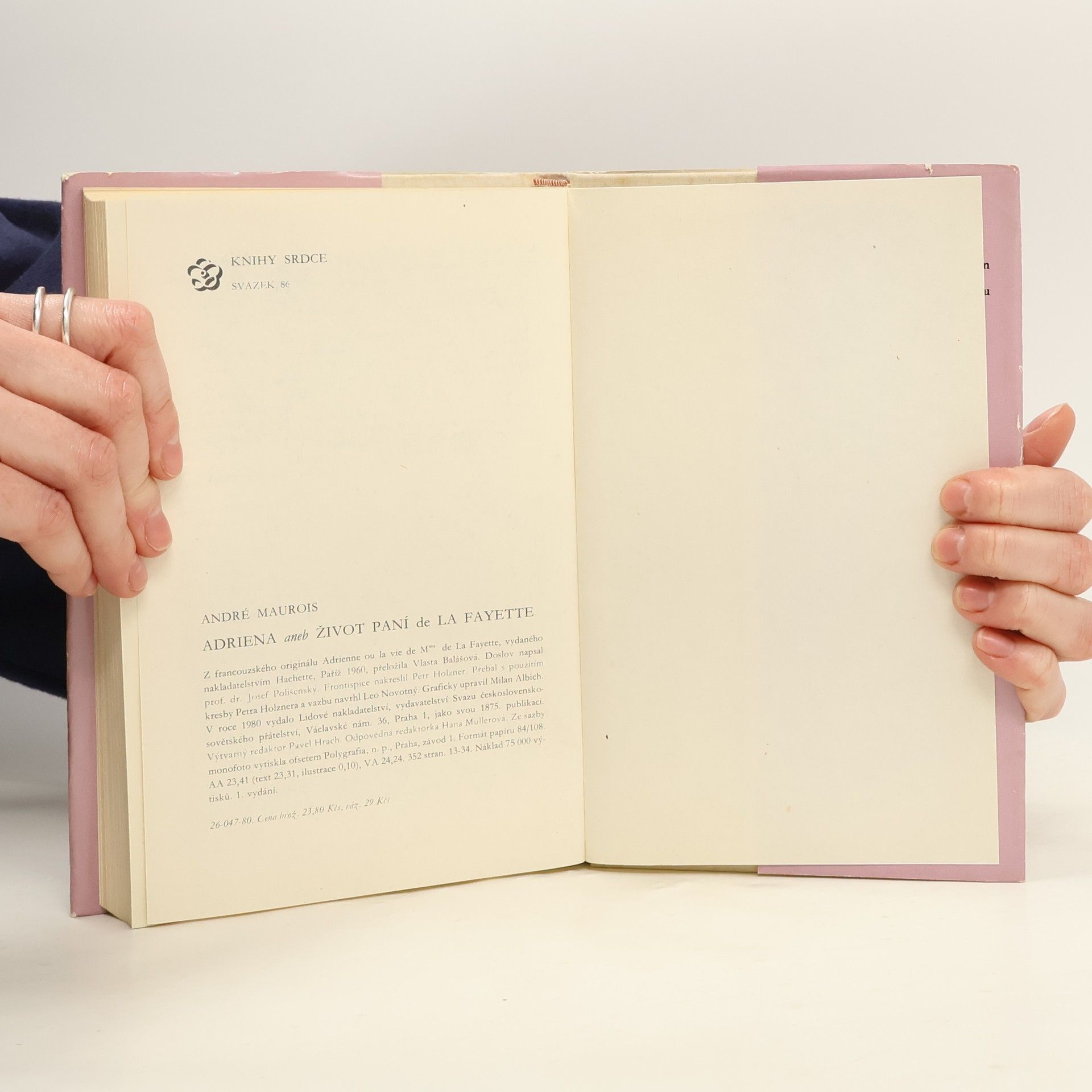 Kniha je věnována životu manželky francouzského politika a vojáka, markýze de La Fayette. Autor popisuje historické události druhé poloviny 18. století, které tvoří k této biografii zajímavý rámec. Podnětem k napsání tohoto díla bylo autorovo náhodné objevení dosud nezveřejněných dokumentů a dopisů hlavní hrdinky knihy Adrieny de La Fayette. Historie událostí Velké francouzské revoluce a boje Spojených států amerických za nezávislost tvoří fascinující, někdy až dominantní pozadí životopisu jedné z nejoddanějších a nejstatečnějších žen, která z lásky následovala svého manžela i do krutého vězení, i když ji to málem stálo život.