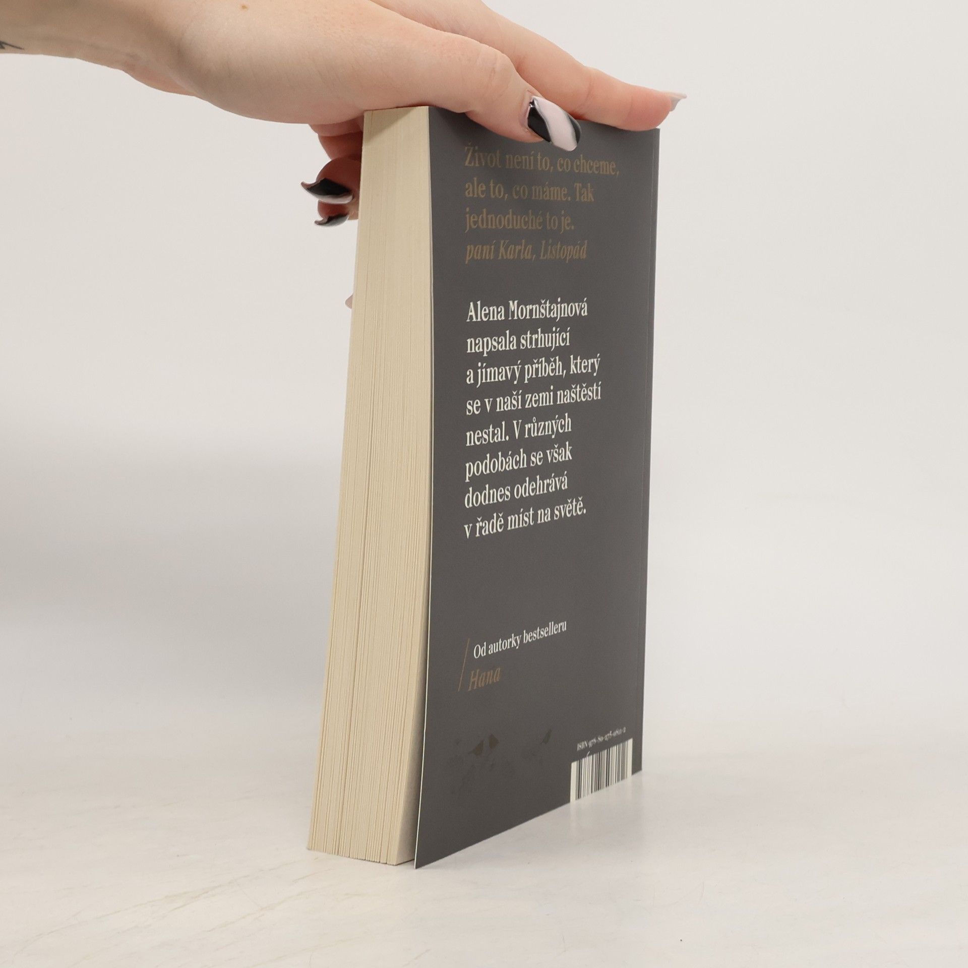 Ptali jste se někdy sami sebe, jaký by byl váš život, kdyby v listopadu 1989 dopadlo všechno jinak? Jaké by byly naše osudy, kdyby komunismus neskončil a my zůstali za železnou oponou oddělující nás od světa i jeden od druhého? Jedna z nejúspěšnějších českých spisovatelek Alena Mornštajnová opět překvapuje. Její nový román je dramatickým příběhem obyčejné rodiny, kterou velké dějiny jedné listopadové noci rozdělí a postaví proti sobě. Sledujeme příběh Marie Hajné, která je kvůli účasti na demonstracích zatčena a odsouzena ke dvaceti letům vězení. Ví, že už nejspíš nikdy neuvidí vyrůstat své děti, a při životě ji udržují jen dopisy. A taky naděje, že se nakonec přece jen shledají. Vedle toho se odvíjí příběh dívenky Magdaleny, která je odebrána rodičům a umístěna do „ozdravovny“, v níž se vychovávají nové komunistické kádry. Jejich osudy se jednoho dne protnou, ale zcela jinak, než si obě představovaly a přály. Od autorky bestselleru Hana.