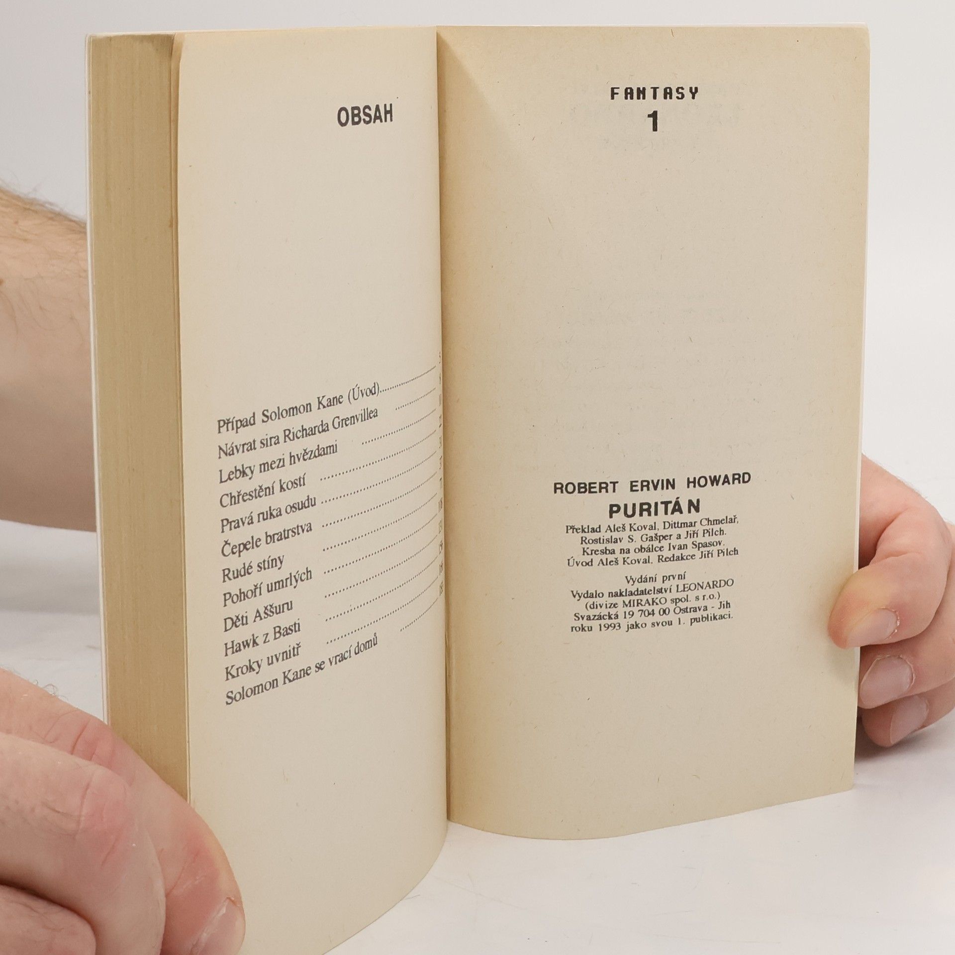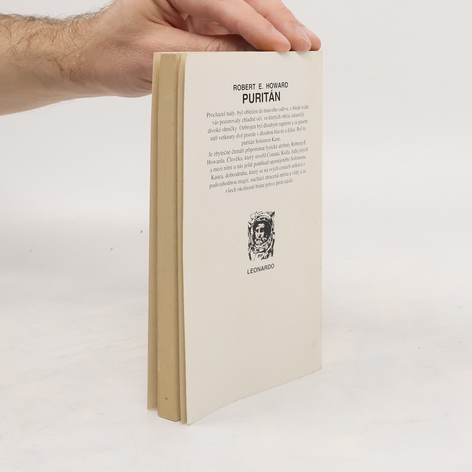 Procházel tudy, byl oblečen do tmavého oděvu, z bledé tváře vás pozorovaly chladné oči, ve kterých občas zatančily divoké ohníčky. Ozbrojen byl dlouhým rapírem a za pasem měl vetknuty dvě pistole s dlouhou hlavní a dýku. Byl to puritán Solomon Kane. Je zbytečné čtenáři připomínat fyzické atributy Roberta E. Howarda. Člověka, který stvořil Conana, Kulla, řadu jiných a mezi nimi u nás ještě poněkud opomíjeného Solomona Kanea, dobrodruha, který se na svých cestách setkává s podivuhodnou magií, nachází ztracená města a vždy a za všech okolností brání právo proti násilí.
