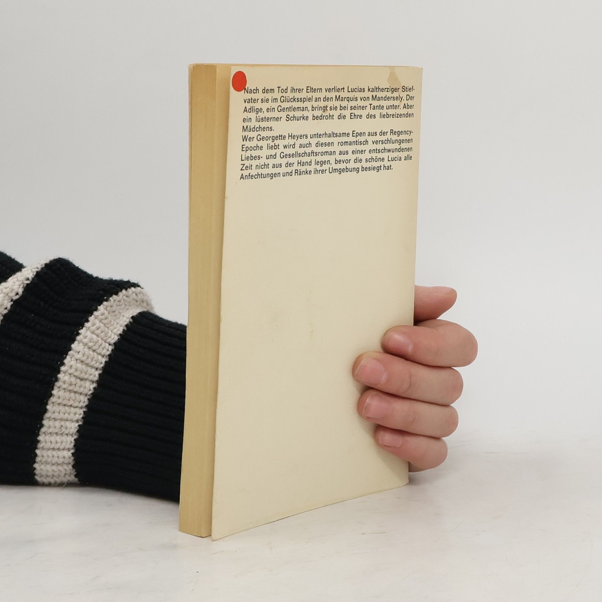 Ein Frauenroman, der seine Leser(innen) sofort fesseln wird. Im vornehmen London des Jahres 1810 gerät die junge Lucia, Tochter eines englischen Adligen und einer italienischen Sängerin, nach dem Tod ihrer Eltern in die Obhut eines kaltherzigen Stiefvaters. Er will sie an einen Schurken verkuppeln. Doch zuvor setzt er sie als Pfand beim Glücksspiel ein – und verliert sie an den Marquis of Mandersely. Der dem Müßiggang ergebene Marquis ist jedoch ein Gentleman und bringt das Mädchen bei seiner ehrbaren Tante unter. Obschon er mit einer schönen Gräfin befreundet ist, gerät sein Herz bald in Verwirrung. Er verliebt sich in die natürliche und reizende Lucia, obschon (oder weil?) sie sich ihm gegenüber sehr zurückhaltend, fast abweisend benimmt und ihre Gefühle vor ihm sorgsam verbirgt. Als ein Spieler die Schwester des Marquis zu einem unehrenhaften Schäferstündchen zwingen will, verteidigt Lucia mutig deren Ehre. Aufopferungsvoll kümmert sie sich auch um einen schwerkranken Vetter ihres Gebieters, und der Marquis glaubt, daß ihr Herz endgültig einem anderen gehört. Als Lucia jedoch geraubt und in ein Freudenhaus verschleppt wird, ist der entflammte Marquis endgültig entschlossen, um seine Liebe zu kämpfen.Wer Georgette Heyers unterhaltsame Epen aus der Regency-Epoche liebt, wird auch diesen romantisch verwobenen Liebes- und Gesellschaftsroman aus einer entschwundenen Zeit verschlingen.
