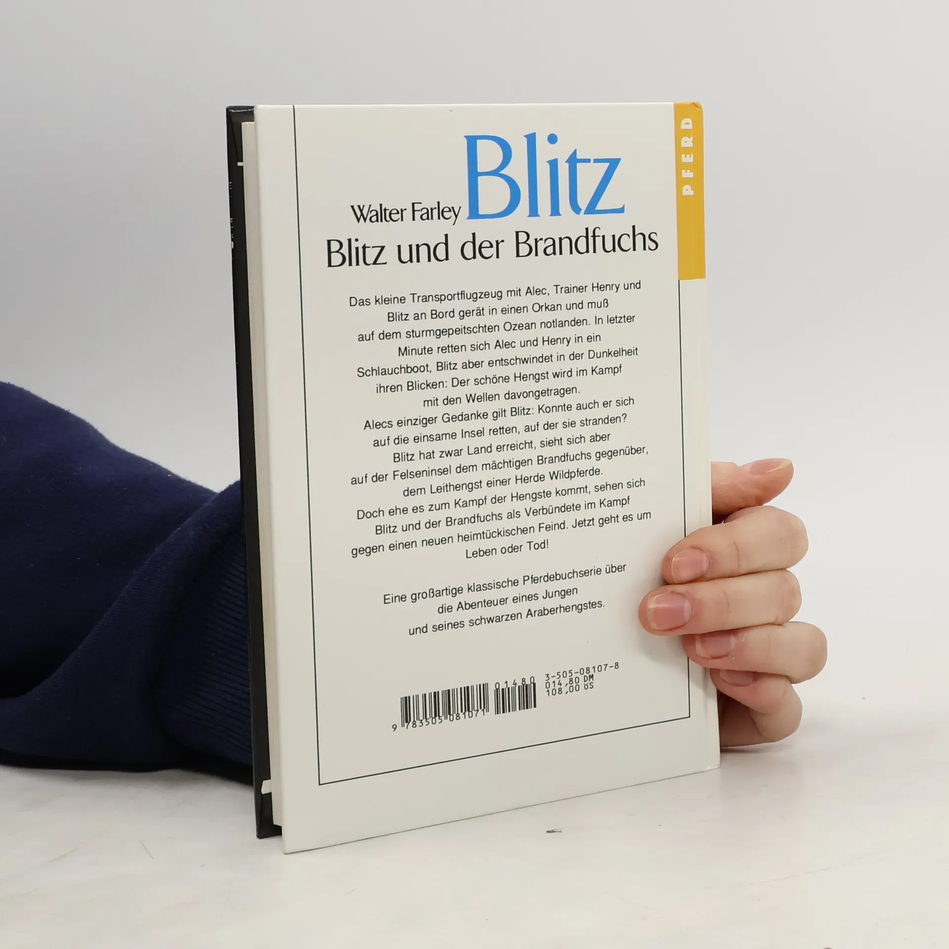 Das Transportflugzeug mit Alec, Trainer Henry und Blitz an Bord gerät in einen Orkan und muss auf dem Ozean notlanden. In letzter Minute retten sich Alec und Henry in ein Schlauchboot, Blitz aber entschwindet im dunklen Meer. Alecs einziger Gedanke gilt dem schwarzen Hengst: Konnte er sich retten? Blitz erreicht zwar Land, aber auf der Felseninsel herrscht der mächtige Brandfuchs, der Leithengst einer Herde Wildpferde. Doch bevor es zum Kampf der Hengste kommt, geraten plötzlich alle Tiere in tödliche Gefahr …