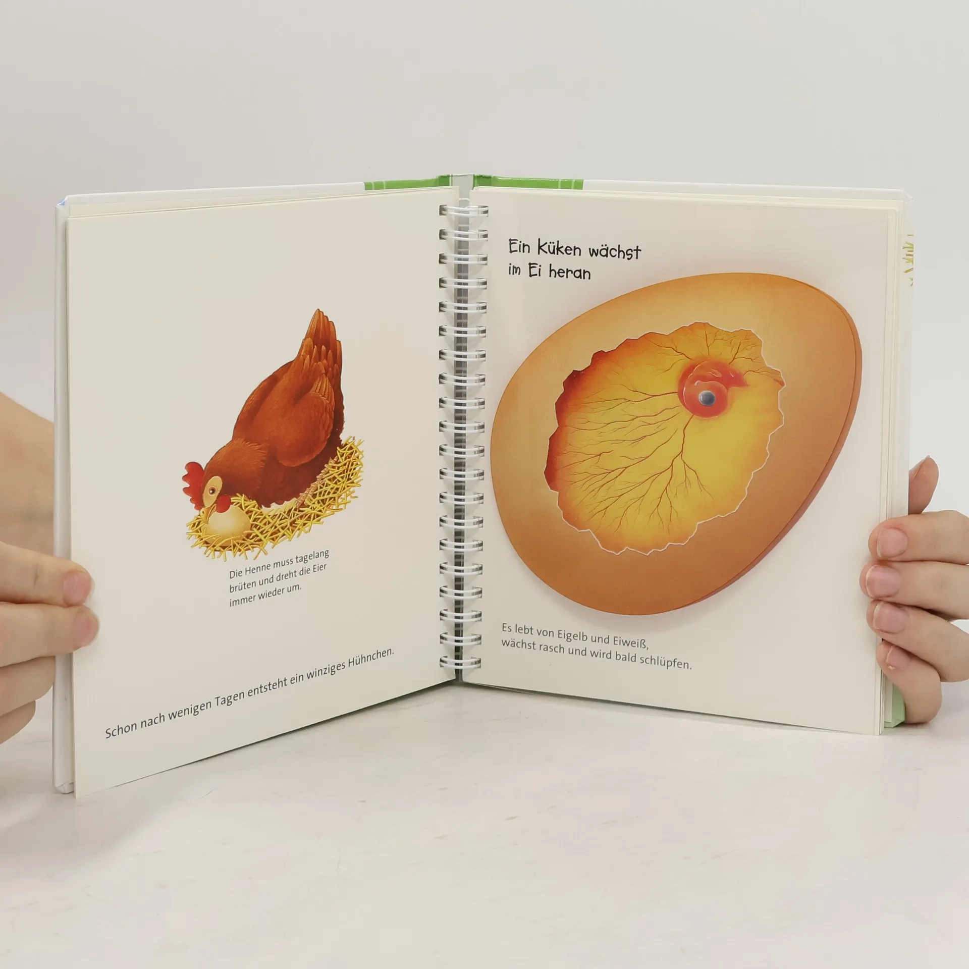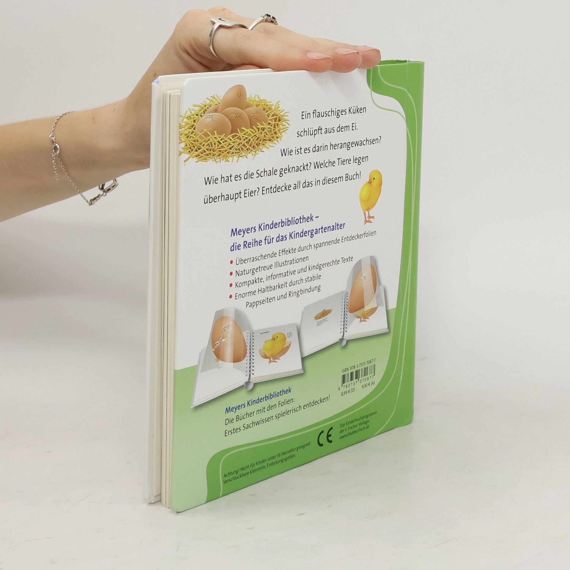 Die Henne brütet und gackert und nach einigen Tagen schlüpft aus dem Hühnerei ein flaumweiches Küken. Aber wusstest du, dass das Krokodil, die Frösche, die Schildkröten und die Schmetterlinge Eier legen? Dieser Band der Reihe "Meyers. Die kleine Kinderbibliothek“ zeigt dir das Geheimnis des Eis und stellt dir die Tiere vor, die Eier legen. Diese spannende Sachbilderbuchreihe zieht mit ihrem einzigartigen Konzept bereits seit mehr als 10 Jahren kleine Leser in ihren Bann: Zwischen den Buchseiten befinden sich transparente Folien, die Verdecktes sichtbar machen, das Innenleben der Dinge zeigen und Veränderungen veranschaulichen. So wird jeder Band zur spielerischen Entdeckungsreise.