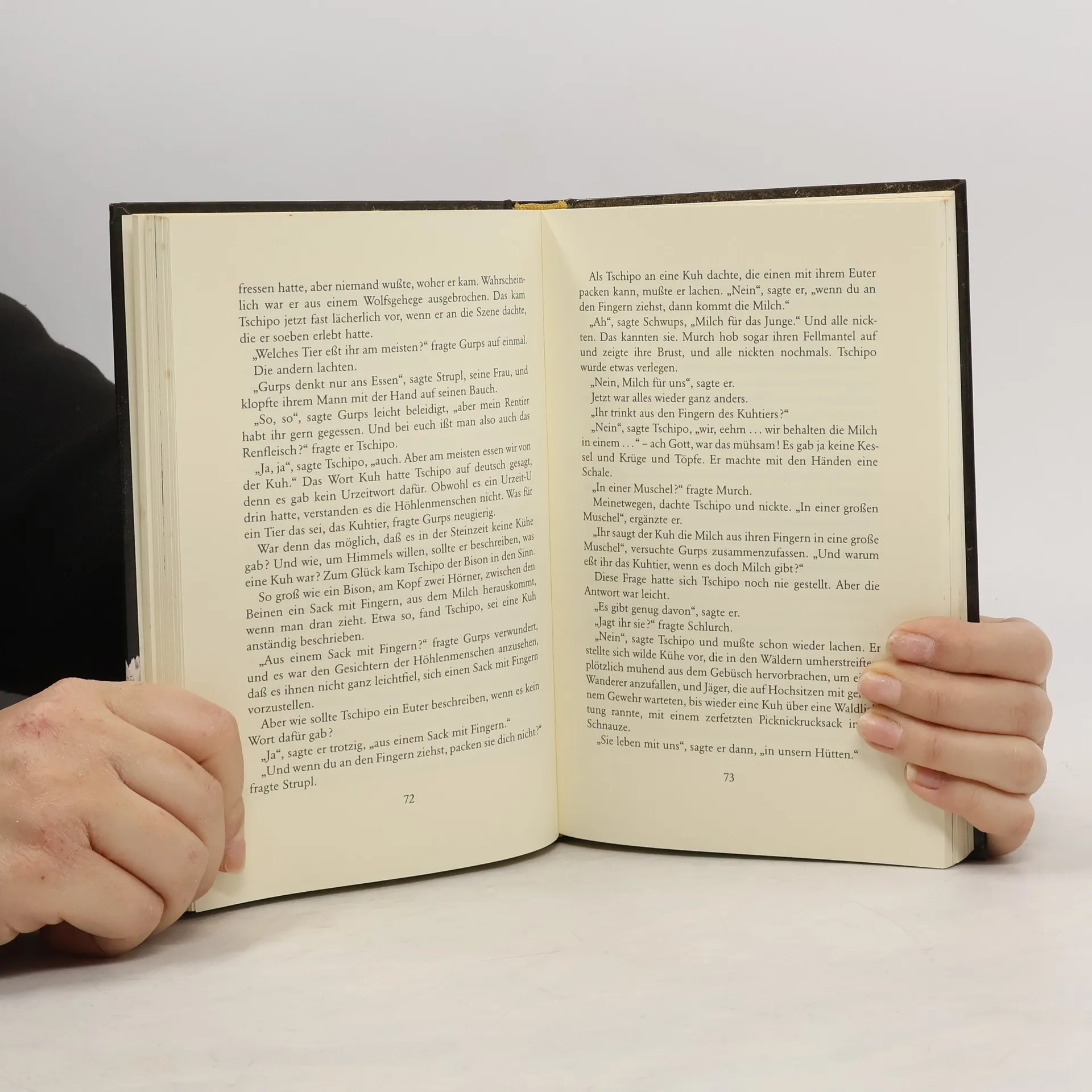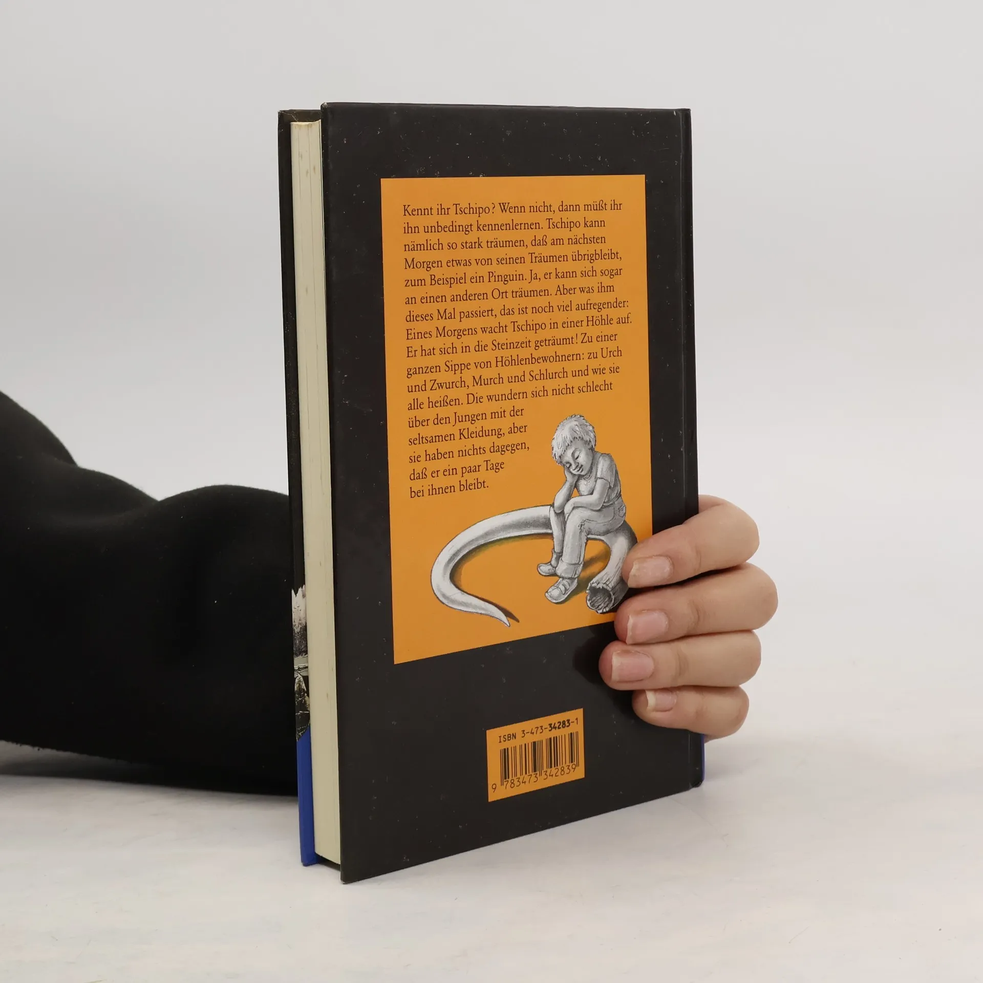 "Tschipo war heute im Traum im Heidenloch gewesen, wo die Höhlenmenschen gehaust hatten, und dann hatte er eine Pfeilspitze gefunden. Und die hielt er jetzt in der Hand. Das war vielleicht ein Fund! Den musste er sofort seiner Mutter zeigen. Aber halt! Das kannte er doch von früher, dass am Morgen etwas von seinen Träumen übrig blieb. Die Erwachsenen konnten das nicht begreifen und hielten es für eine Art Krankheit. Wenn das also wieder anfing mit dem Träumen, war es vielleicht besser, nichts davon zu erzählen..." Eines Morgens wacht Tschipo sogar in einer Höhle auf. Er hat sich in die Steinzeit geträumt! Zu einer ganzen Sippe von Höhlenbewohnern: zu Urch und Zwurch, Schlurch und Murch und wie sie alle heißen. Die wundern sich nicht schlecht über den Jungen mit der seltsamen Kleidung, aber sie haben nichts dagegen, dass er ein paar Tage bei Ihnen bleibt.