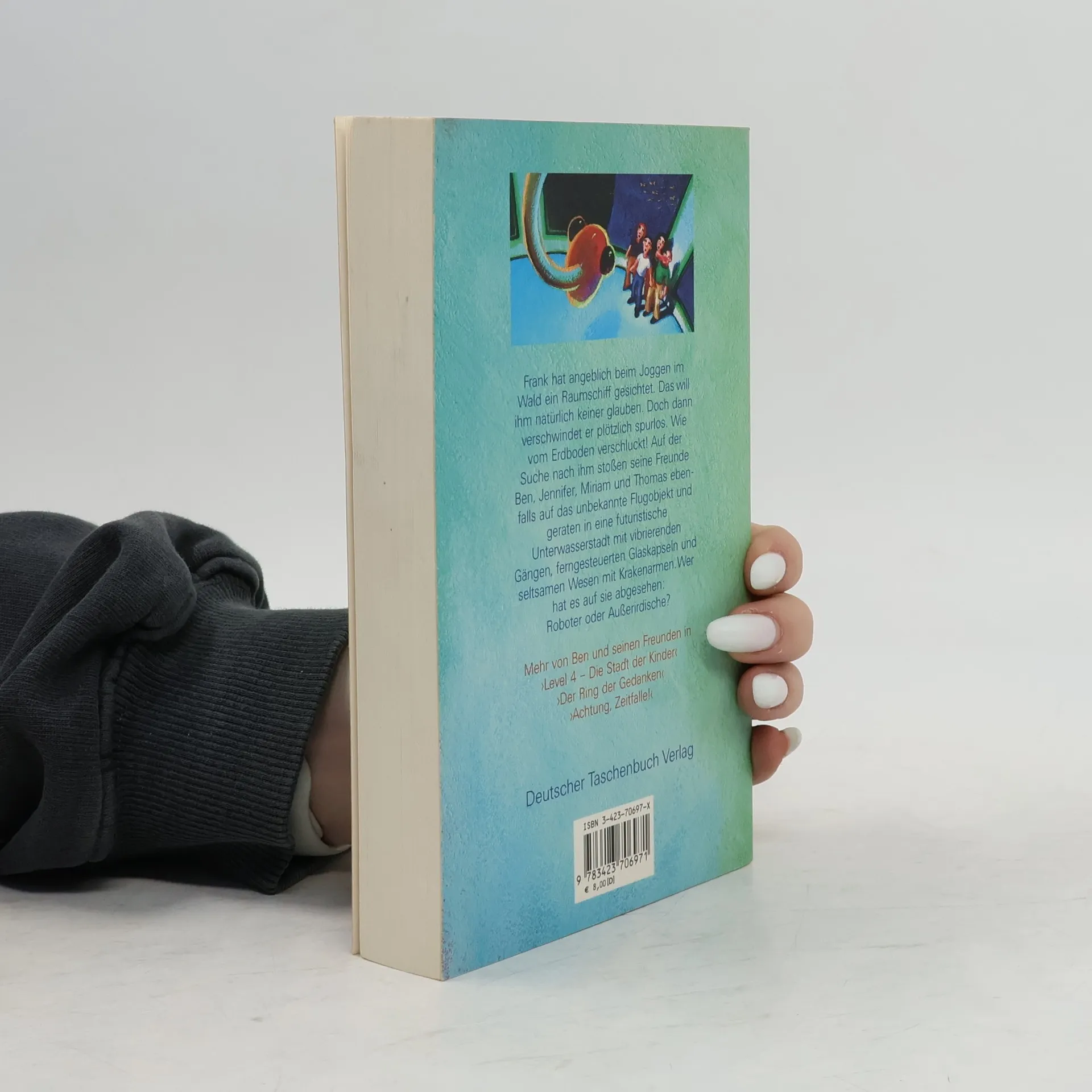 Frank hat angeblich beim Joggen im Wald ein Raumschiff gesichtet. Das will ihm natürlich keiner glauben. Doch dann verschwindet er plötzlich spurlos. Wie vom Erdboden verschluckt! Auf der Suche nach ihm stoßen seine Freunde Ben, Jennifer, Miriam und Thomas ebenfalls auf das unbekannte Flugobjekt und geraten in eine futuristische Unterwasserstadt mit vibrierenden Gängen, ferngesteuerten Glaskapseln und seltsamen Wesen mit Krakenarmen. Wer hat es auf sie abgesehen: Roboter oder Außerirdische?