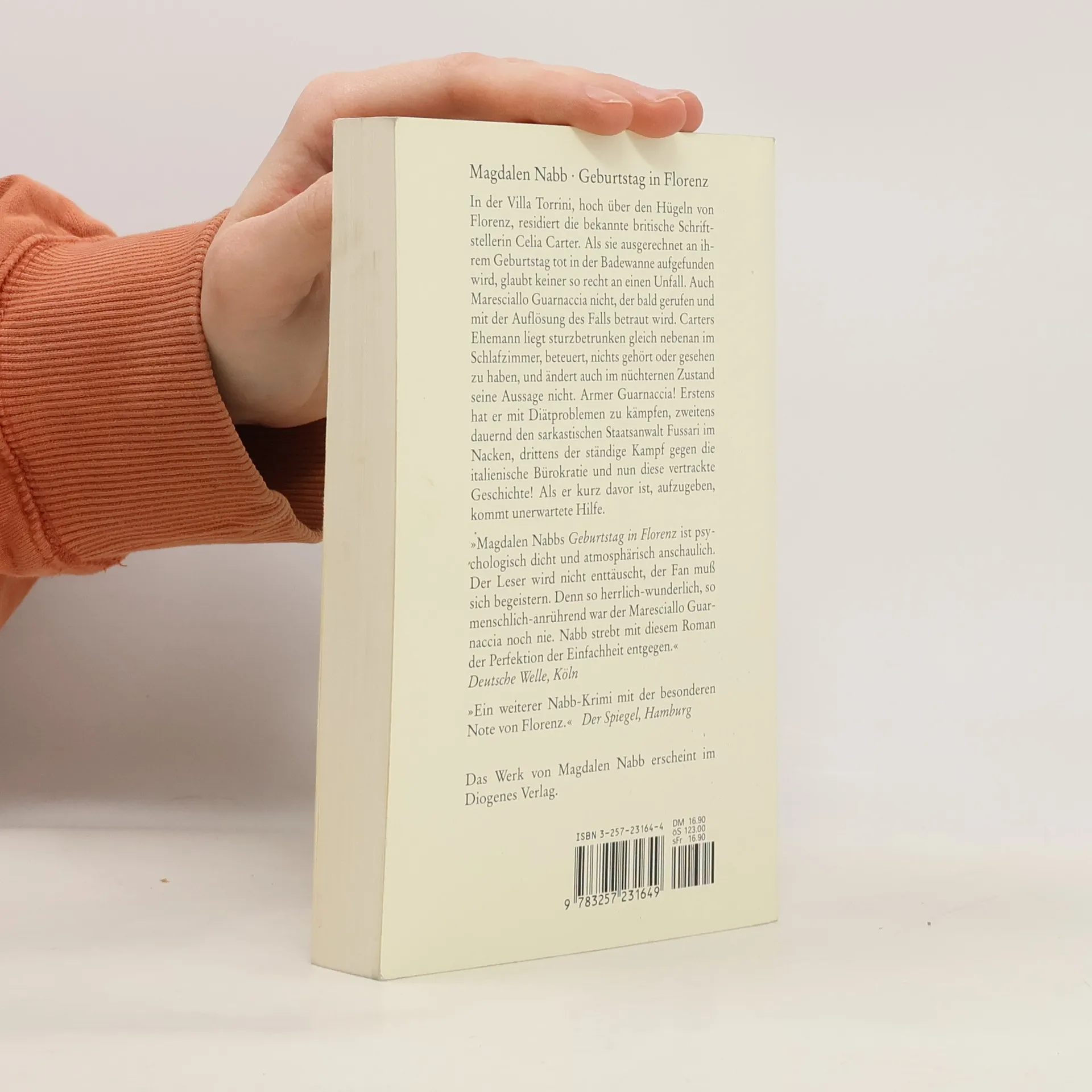 Die Schriftstellerin Celia Carter wird ausgerechnet an ihrem Geburtstag tot in der Badewanne aufgefunden in der Villa Torrini, hoch über den Hügeln von Florenz. Maresciallo Guarnaccia glaubt nicht an einen Unfall. Carters Ehemann liegt sturzbetrunken gleich nebenan im Schlafzimmer, beteuert, nichts gehört oder gesehen zu haben, und ändert auch im nüchternen Zustand seine Aussage nicht. Eine vertrackte Geschichte. Als Guarnaccia kurz davor ist aufzugeben, kommt unerwartet Hilfe.