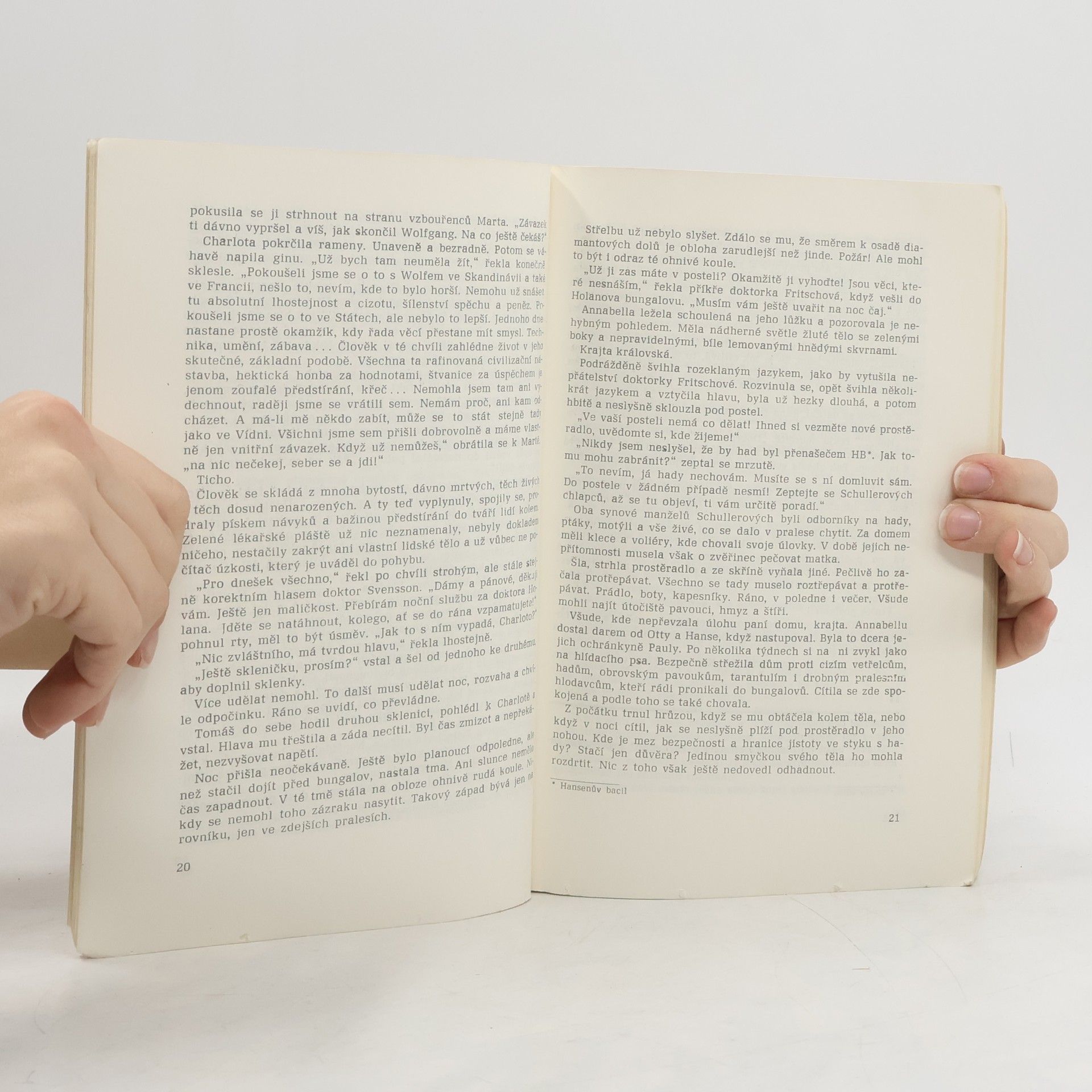 Dobrodružný román odehrávající se v jihoafrickém pralese, kde je umístěna nemocnice pro malomocné. Personál tvoří lékaři z různých evropských zemí, kteří musí svou práci a soukromí zcela podřídit životu v pralese. Chod nemocnice naruší náhlé přepadení člený organizace Zelená mamba, kteří chtějí celou oblast ovládnout a zmocnit se blízkého diamantového dolu.