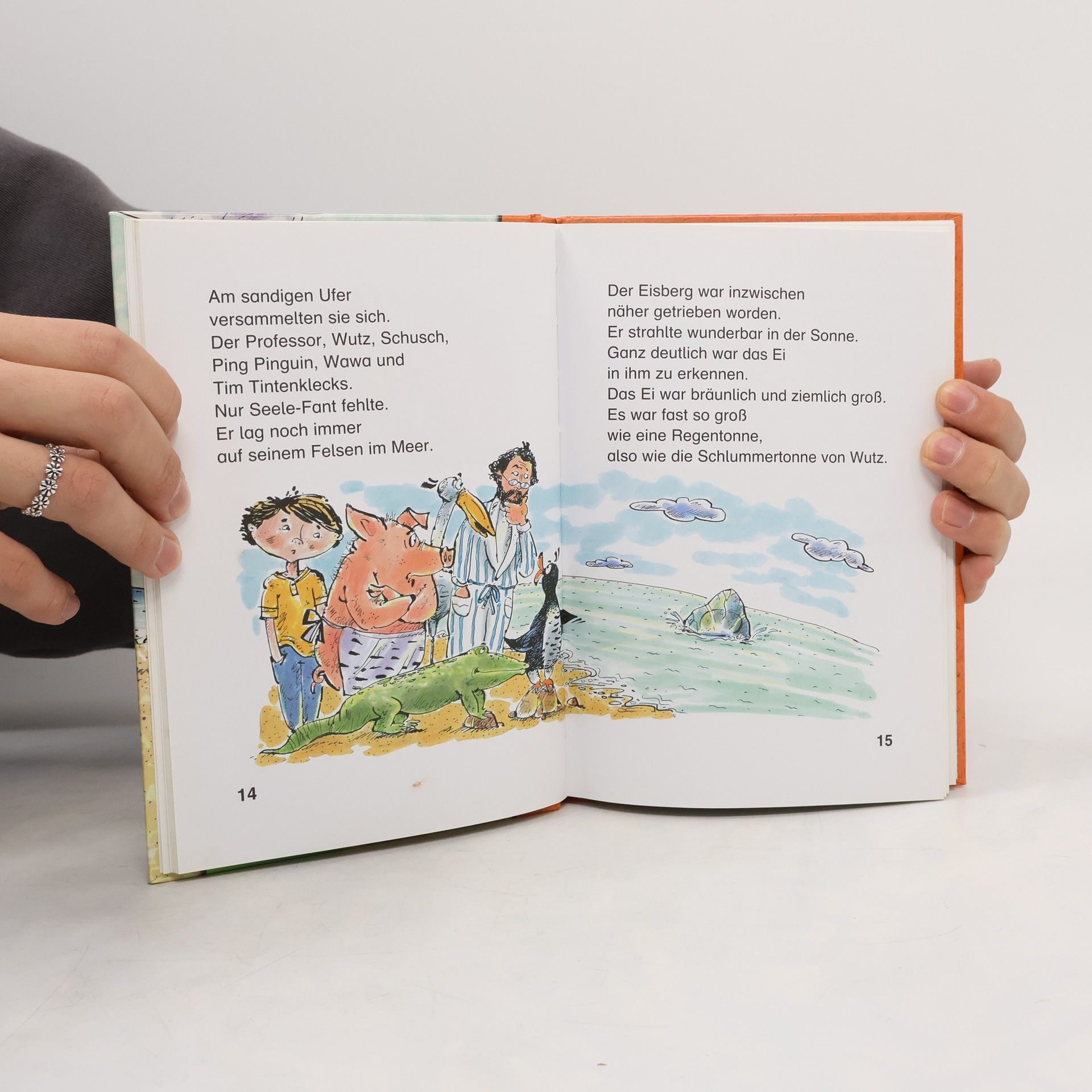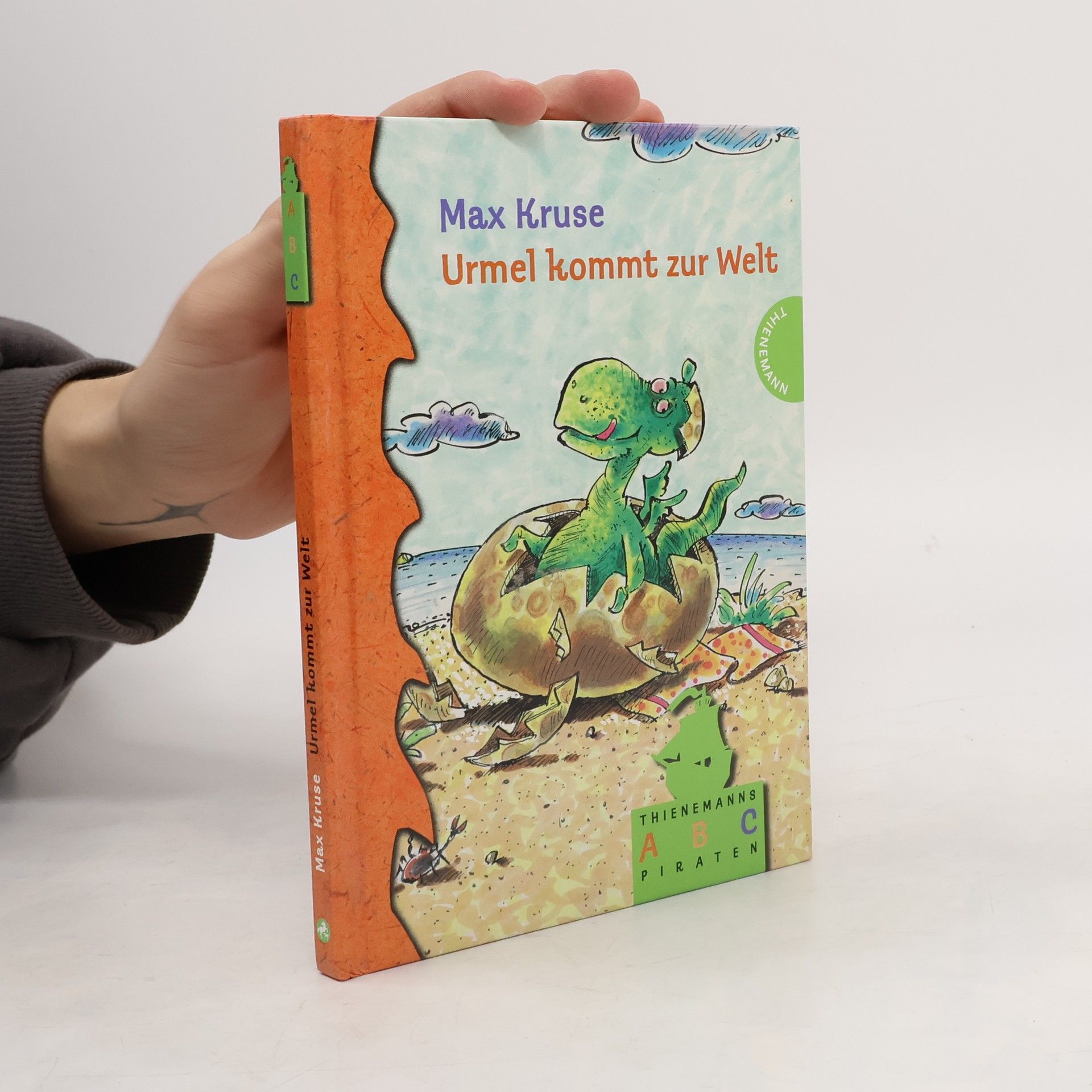 Mit Thienemanns ABC-Piraten werden alle Buchstaben erobert! Urmel für Einsteiger. So macht Lesen lernen Spaß! Ab 6. Als ein Eisberg mit einem Ei aus der Urzeit an der Insel Titiwu angetrieben wird, geraten Professor Tibatong und seine sprechenden Tiere in helle Aufregung. Denn in dem Ei steckt das Urmel! Ein Leben ohne dieses kecke Wesen mit dem großen Kopf und dem langen Schwanz kann sich bald niemand mehr vorstellen. Max Kruse, 1921 in Bad Kösen geboren, ist der Sohn der berühmten Puppenschöpferin Käthe Kruse. Nach dem Abitur in Weimar studierte er in Jena, bis die Universitäten 1943 schlossen. 1945 heiratete er und baute die Puppenfabrik seiner Mutter in Bad Pyrmont wieder auf. Da er immer Schriftsteller werden wollte, übergab er 1958 die Firma an seine Schwester und zog nach München, wo er als Werbetexter arbeitete und erste Kinderbücher verfasste. Sein Durchbruch kam 1965 mit der Verfilmung von „Der Löwe ist los“ durch die Augsburger Puppenkiste. Heute liegt die Gesamtauflage seiner Bücher bei über drei Millionen Exemplaren. Max Kruse lebt nahe München im Loisachtal. Am sandigen Ufer versammelten sich der Professor, Wutz, Schusch, Ping Pinguin, Wawa und Tim Tintenklecks. Nur Seele-Fant fehlte, er lag noch auf seinem Felsen im Meer. Der Eisberg war näher getrieben worden und strahlte in der Sonne. Das Ei, bräunlich und groß, war deutlich zu erkennen. Es war fast so groß wie eine Regentonne, also wie die Schlummertonne