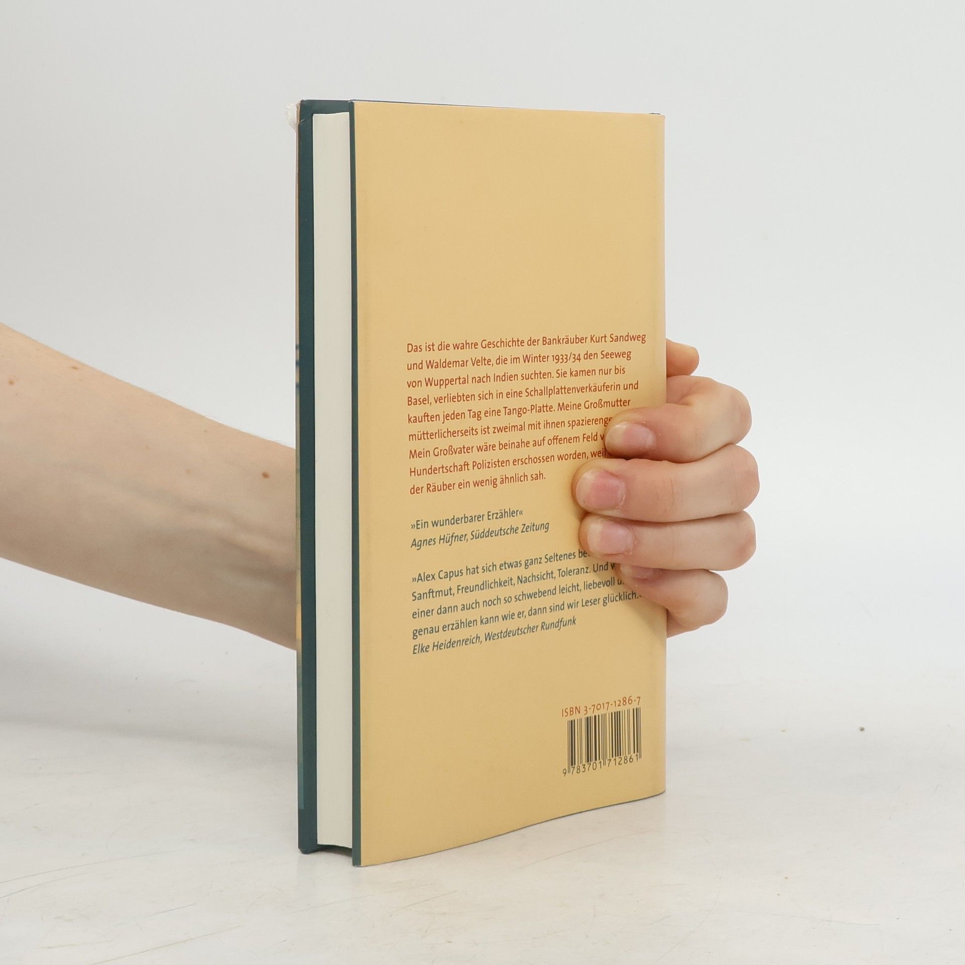 Die wahre Geschichte der Bankräuber Kurt Sandweg und Waldemar Velte, die im Winter 1933/34 den Seeweg von Wuppertal nach Indien suchten. Sie kamen nur bis Basel, verliebten sich in eine Schallplattenverkäuferin und kauften jeden Tag eine Tango-Platte. Zwei arbeitslose junge Burschen wollen 1933 aus Nazideutschland fliehen. Um sich das Reisegeld zu beschaffen, überfallen sie eine Bank, wobei sie versehentlich den Filialleiter erschießen. Auf der Flucht in den Süden kommen sie nicht weit: In Basel verliebt sich der eine in eine Schallplattenverkäuferin. Tag für Tag kauft er eine Tango-Platte, bis das Geld aufgebraucht ist und der nächste Banküberfall nötig wird. Abend für Abend gehen die drei am Rhein spazieren. Mit von der Partie ist eine junge Sportartikelverkäuferin, die dreißig Jahre später die Großmutter des Erzählers sein wird und die sich entscheiden muß zwischen einem Bankräuber und ihrem Verlobten. Alex Capus hat diese authentische Geschichte um Freundschaft und Treue, Liebe und Verrat akribisch recherchiert – in Polizei- und Zeitungsarchiven, in Gesprächen mit Überlebenden, auf langen Wanderungen an den Orten des Geschehens. Entstanden ist ein Roman wie ein Tango: leicht und schwermütig, frisch und elegant und voller Trauer um verpaßte Möglichkeiten und zerronnenes Glück.